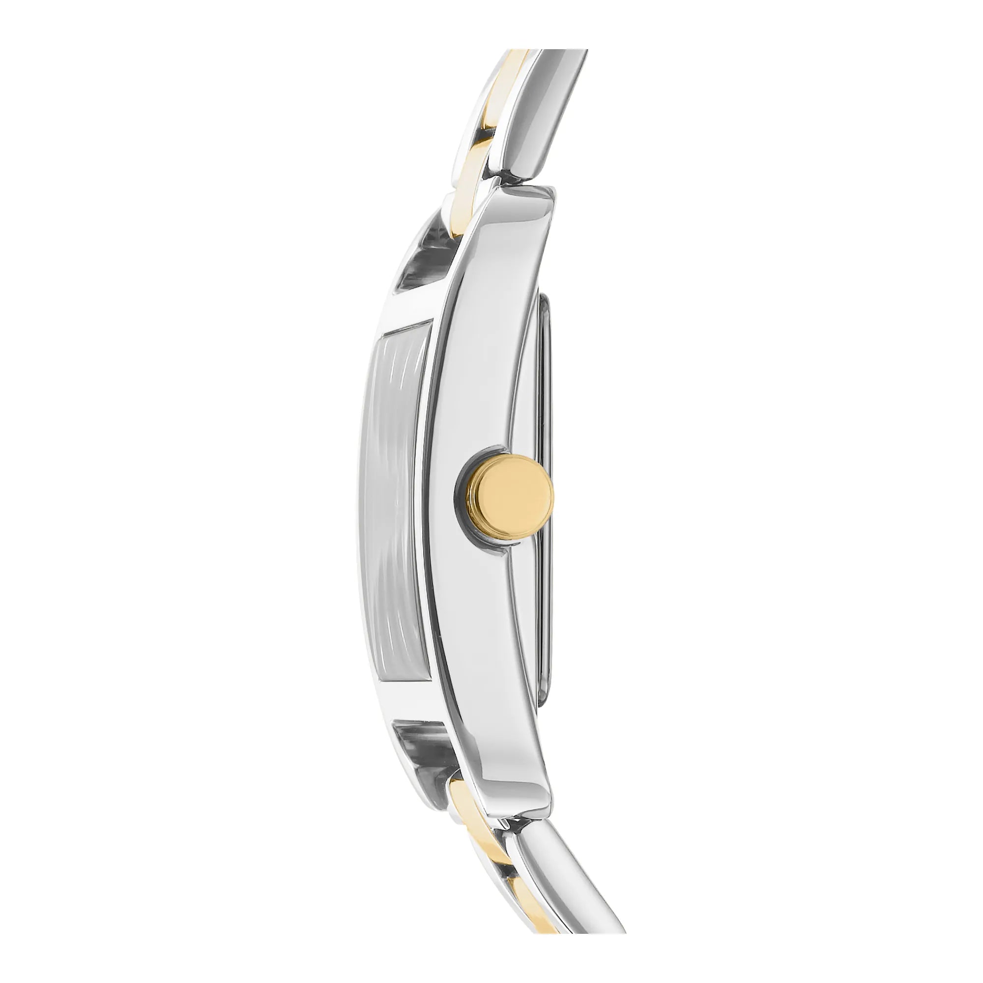 In the bustling heart of the city, where fashion meets function, emerges a timepiece that embodies the essence of urban elegance. The DKNY DK1L001 City Maxi watch is a testament to modern sophistication, designed for the woman who navigates the world with grace and confidence. Its sleek rectangular case, bathed in a refined silver grey hue, captures the light with every movement, creating a subtle yet striking presence on the wrist. The stainless steel band, matching the case in its silver grey allure, wraps around the wrist with a sense of continuity and harmony, secured by a butterfly deployant clasp with a push-button for ease and security. At the heart of this exquisite piece lies a bottle green dial, a nod to timeless elegance, where three hands dance gracefully across its surface, powered by precise quartz movement. The mineral crystal offers a clear window into this world of style, while the pull & push crown ensures seamless adjustments. Water-resistant, this watch is as practical as it is beautiful, ready to accompany its wearer through the myriad adventures of city life. Crafted with a refined design, the DKNY City Maxi is not just a watch, it is a statement of fashion-forward thinking, a companion for the modern woman who values both style and substance.