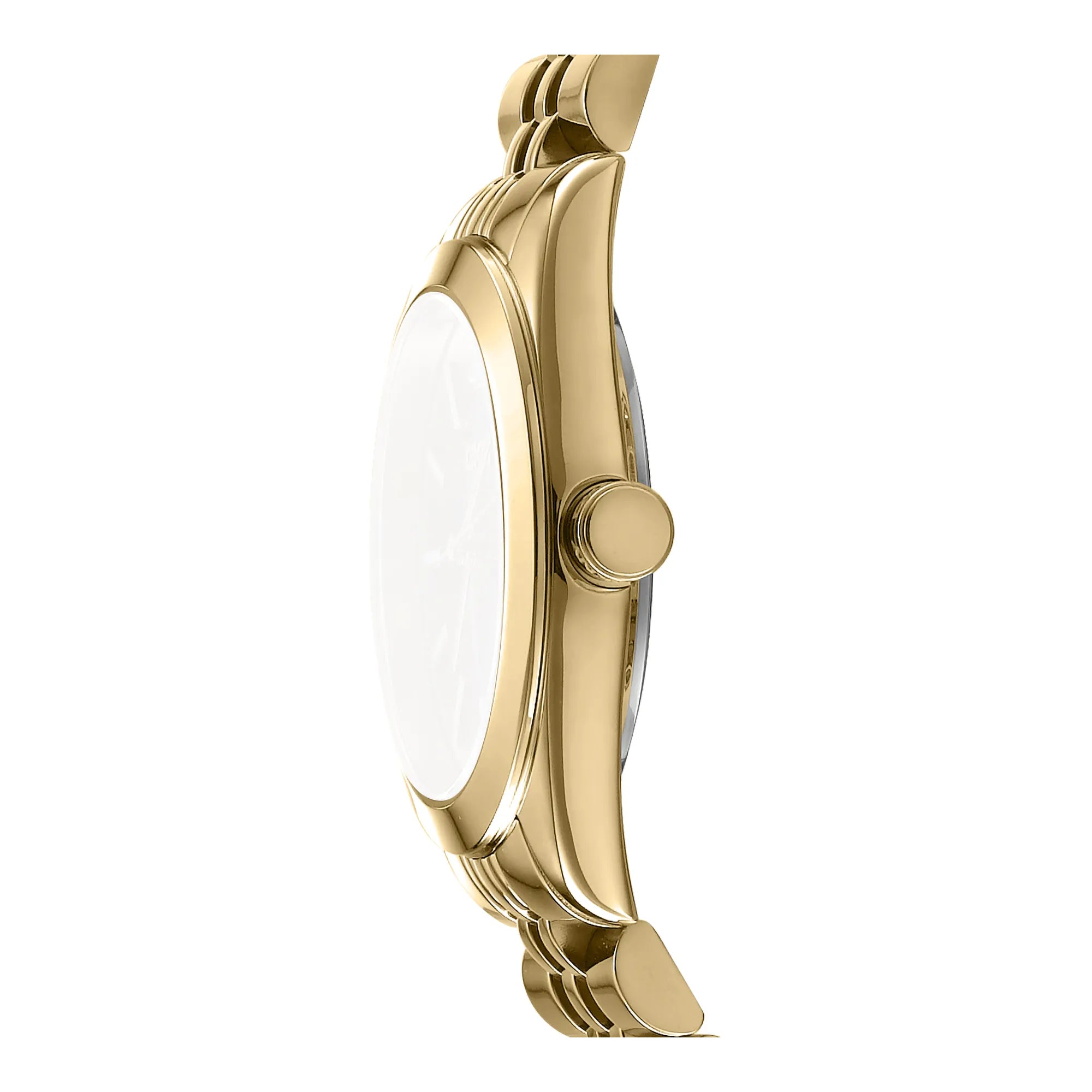 In the heart of the bustling cityscape, where fashion meets function, emerges a timepiece that embodies the essence of urban elegance—the DKNY Nolita Midi. Crafted in a refined round silhouette, this watch is a testament to the modern woman's flair for style and sophistication. Its yellow gold case, with a diameter of 32mm, exudes a warm, luxurious glow, perfectly complementing the stainless steel band that wraps around the wrist with a seamless grace. The folding deployant clasp with a push-button ensures a secure fit, allowing the wearer to move through her day with confidence and ease. Beneath the mineral crystal, the silver-grey dial captures the light in a dance of subtle reflections, while the three-hand quartz movement keeps time with precision. Water-resistant up to 50 meters, this watch is as versatile as it is stylish, ready to accompany its wearer from the office to an evening out. The DKNY Nolita Midi is more than just a watch, it's a statement of fashion-forward thinking, a piece that speaks to the heart of the city and the soul of the woman who wears it.