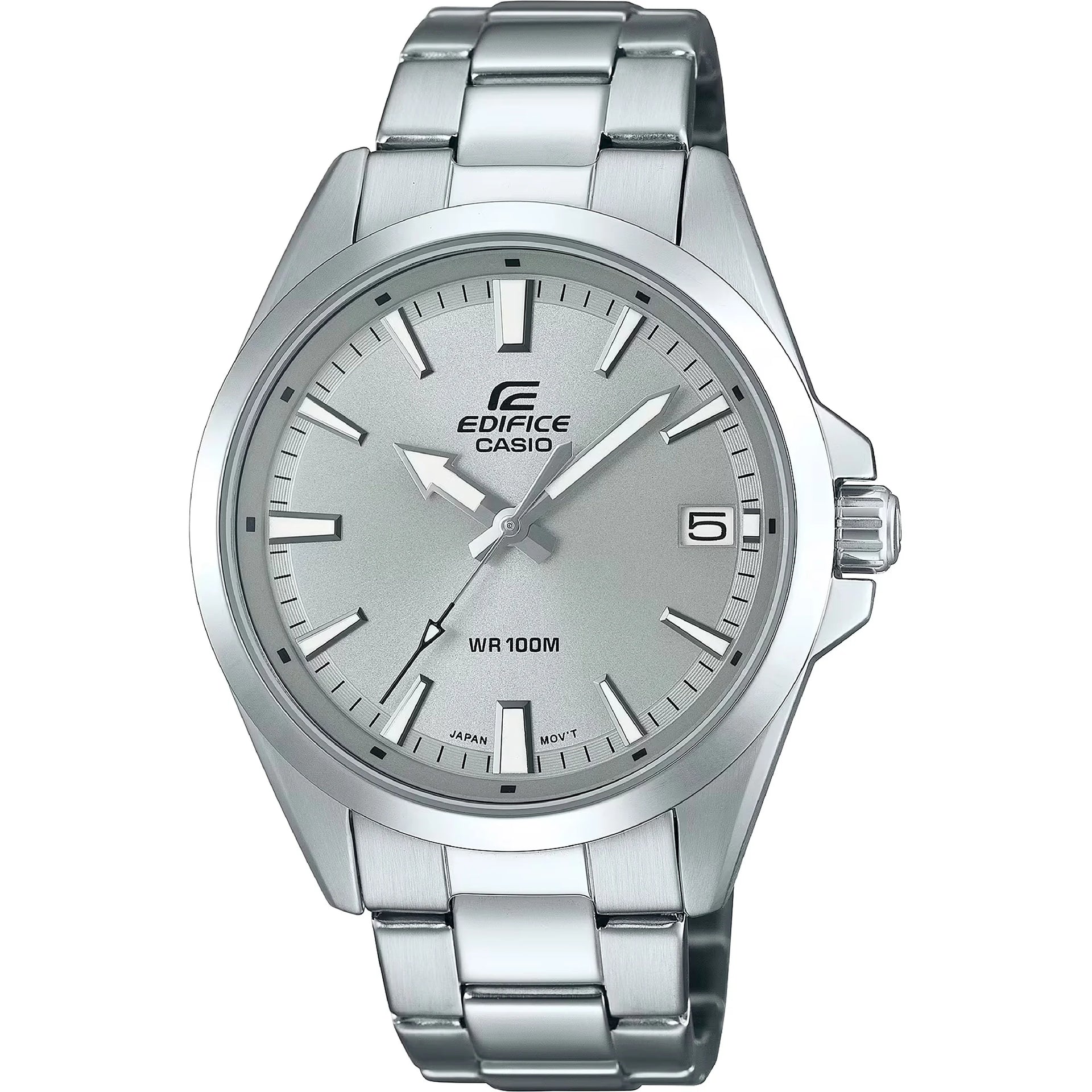 In the realm of timekeeping, where precision meets elegance, emerges a masterpiece from the CASIO Edifice collection. Crafted in the heart of innovation, this watch embodies the perfect blend of functionality and style, designed for the modern man who values both. Its round case, bathed in a sophisticated silver grey, measures a confident 42mm in diameter, making a statement of subtle authority on the wrist. The mineral crystal shields a stone grey dial, a canvas of understated elegance that whispers of timeless sophistication. With a water resistance of up to 100 meters, this timepiece is as adventurous as it is refined, ready to accompany you from boardroom meetings to weekend escapades. The stainless steel band, also in silver grey, wraps around the wrist with a butterfly deployant clasp, ensuring both security and comfort. The pull & push crown offers ease of adjustment, while the quartz movement guarantees precision in every tick. A date calendar discreetly positioned on the dial adds a practical touch to its analogue display. This CASIO Edifice watch is not just an accessory, it's a testament to the art of watchmaking, where every detail is meticulously crafted to reflect the essence of casual sophistication.