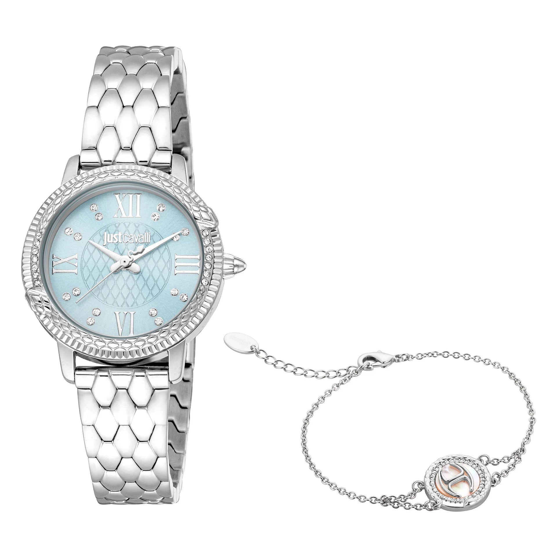 Just Cavalli Signature Snake Viperized Silver Grey Light Blue