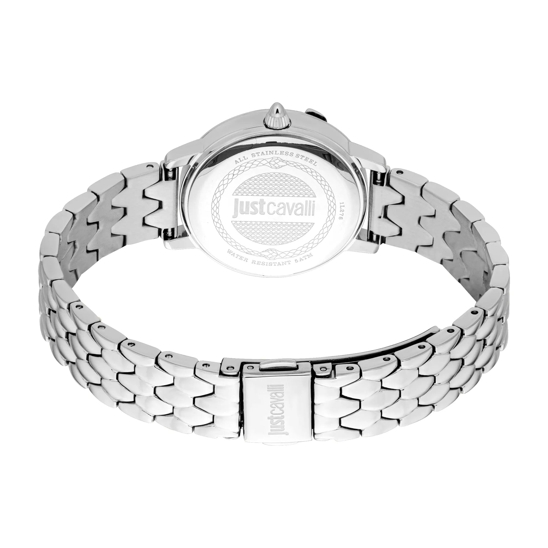 Embrace the allure of the Just Cavalli Viperized watch, where elegance meets fashion in a silver grey embrace. The light blue dial, encased in a 30mm round case, whispers sophistication. A stainless steel band and butterfly clasp complete this water-resistant masterpiece.