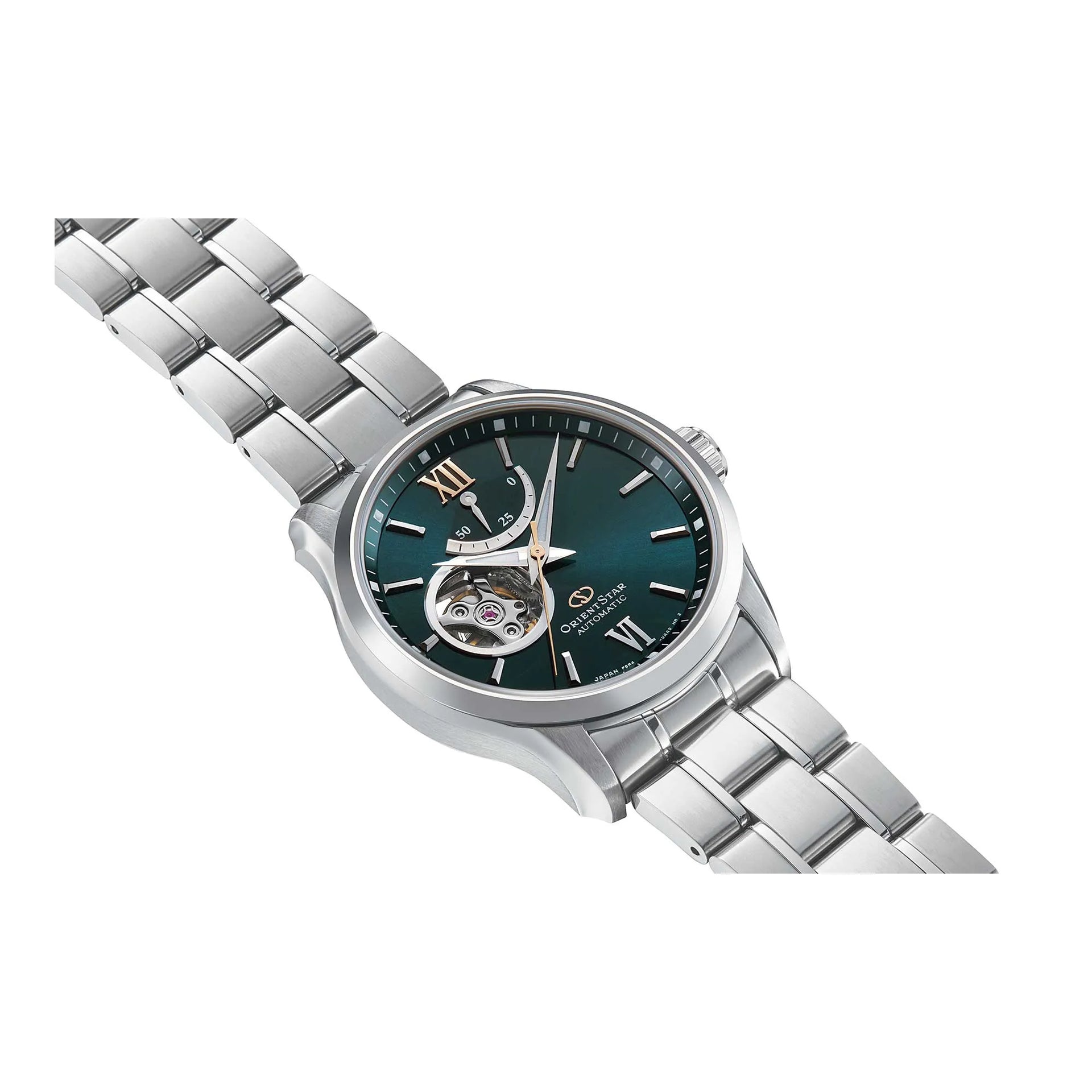In the realm of timepieces, where elegance meets everyday functionality, this watch stands as a testament to refined design and casual sophistication. Crafted in a harmonious blend of silver-grey stainless steel, its round case, measuring a balanced 39mm, exudes a timeless allure. The green dial, a nod to nature's tranquility, is shielded by a sapphire crystal, ensuring clarity and resilience. With a water resistance of up to 100 meters, it promises reliability in both urban and adventurous settings. The transparent back offers a glimpse into the watch's intricate workings, a subtle reminder of the artistry within. The band, echoing the case's silver-grey hue, wraps comfortably around the wrist, secured by a folding deployant clasp with a push-button for ease and security. This watch, with its pull & push crown, is not just an accessory but a companion for the modern man, blending style with substance in every tick.
