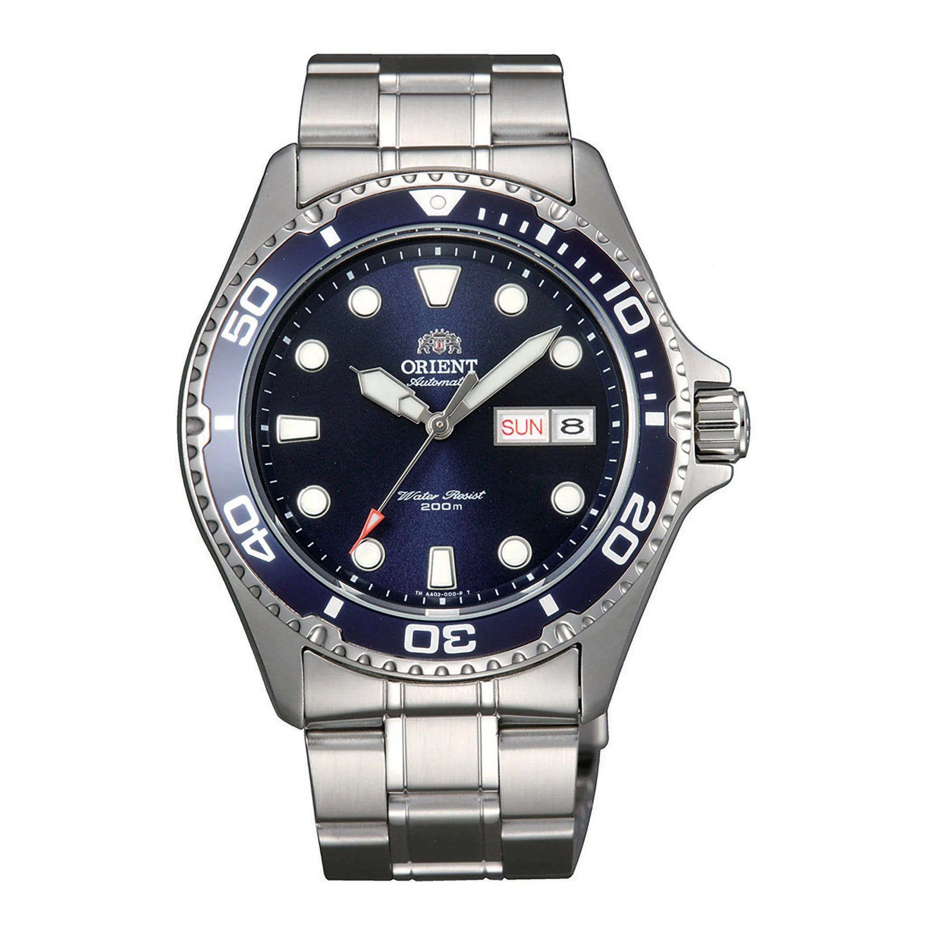 In the world of timepieces, where precision meets elegance, the ORIENT AA02 Mako 2 & Ray 2 emerges as a beacon of sophistication and performance. Crafted in the heart of horological excellence, this ORIENT Sports watch is a testament to the art of watchmaking. Its round case, bathed in a sleek silver grey, houses a dial of deep blue, reminiscent of the ocean's depths, inviting the wearer to explore the mysteries beneath the waves. With a case diameter of 41mm, it strikes the perfect balance between presence and comfort, making it an ideal companion for the modern man who values both style and functionality. The stainless steel band, also in silver grey, complements the case, offering a seamless transition from wrist to watch. Its folding deployant clasp with a push-button and safety lock ensures that this timepiece remains secure, even in the most demanding of environments. Designed for the adventurous spirit, it boasts a diver's water resistance of 200 meters, allowing for underwater exploration with confidence. The mineral crystal protects the dial, while the screw-down crown ensures that the inner workings remain untouched by the elements. At its heart lies the mechanical movement, powered by the Caliber F6922, with 22 jewels ensuring smooth operation. The watch offers both hand-wound and automatic capabilities, catering to the preferences of its wearer. With a daily accuracy of +25/-15, it promises reliability, while the day and date calendar type adds practicality to its allure. This ORIENT watch is not just a timekeeping device, it is a statement of refined design and enduring elegance, perfect for those who dare to blend sport with sophistication.