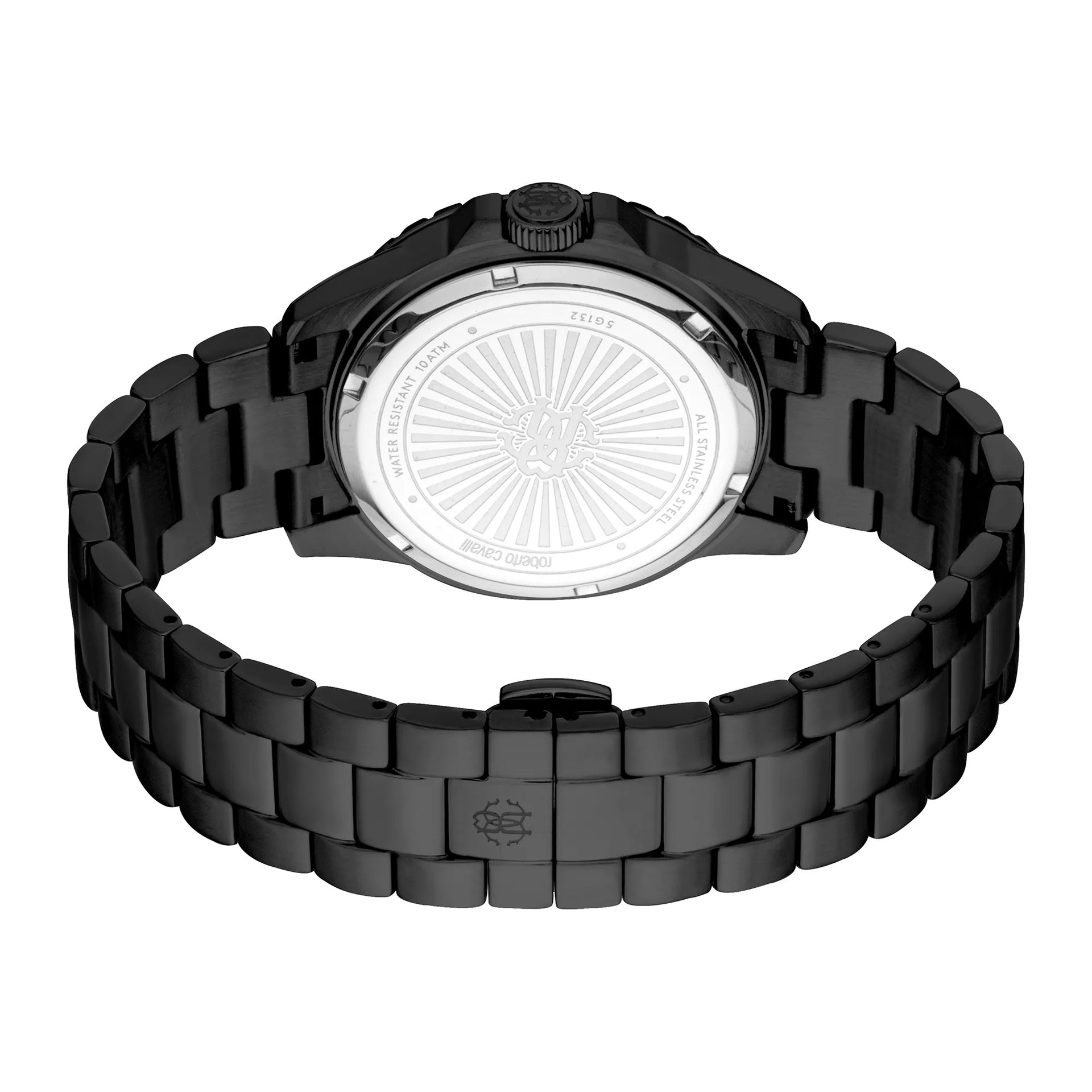 In the realm of timepieces, where elegance meets audacity, emerges a creation that defies the ordinary. Crafted in the heart of Swiss precision, this Roberto Cavalli Watch is a testament to the art of watchmaking, designed for the modern gentleman who embraces fashion with a bold spirit. The round case, cloaked in a sleek black hue, exudes an air of mystery and sophistication, perfectly complementing the stainless steel band that wraps around the wrist with a sense of refined strength. The butterfly deployant clasp with a push-button ensures a seamless fit, marrying functionality with style. At the heart of this masterpiece lies a turquoise dial, a vibrant splash of color that nods to a pop art aesthetic, daring to stand out in a world of monotony. The mineral crystal shields the dial, while the pull & push crown offers ease of adjustment. With a case diameter of 40mm, this watch is a statement piece, yet it remains versatile enough for any occasion. Water-resistant up to 100 meters, it promises reliability in the face of adventure. The quartz movement, powered by the caliber 2315, ensures precision, while the date calendar adds a practical touch to its analogue display. This Roberto Cavalli Watch is not just an accessory, it is an embodiment of character and style, a reflection of the man who wears it.