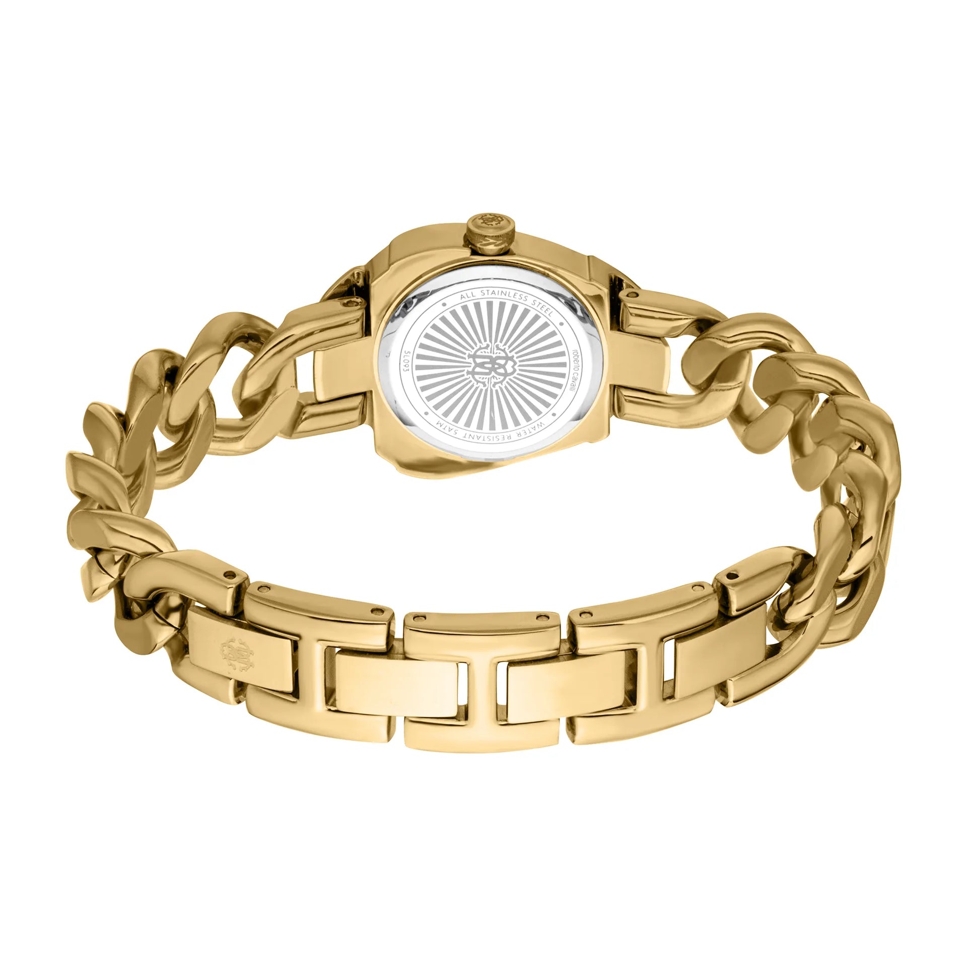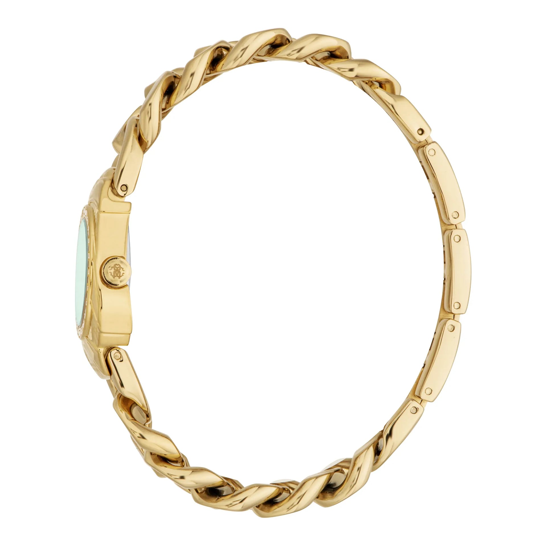 In the world of high fashion, where elegance meets innovation, emerges a timepiece that captures the essence of sophistication and style. Crafted in the heart of Swiss watchmaking excellence, this Roberto Cavalli Lady watch is a testament to refined design and exquisite craftsmanship. Its irregular case shape, bathed in the opulence of yellow gold, exudes a sense of bold luxury that is both captivating and timeless. The mineral crystal face, coupled with a pull & push crown, ensures durability while maintaining an air of delicate grace. The stainless steel band, also in a resplendent yellow gold, wraps around the wrist with a jewelry clasp, offering both security and a touch of glamour. The dial, in a deep bottle green, provides a striking contrast, reminiscent of lush, verdant landscapes, and is powered by a precise quartz movement with a GL22 caliber. This watch, with its 2-hand display, is not just a timekeeping device but a statement of fashion-forward thinking, designed for the modern woman who appreciates the finer things in life. With a water resistance of up to 50 meters, it is as versatile as it is beautiful, ready to accompany its wearer from the boardroom to a night out on the town. This Roberto Cavalli Lady watch is more than an accessory, it is an embodiment of elegance and a celebration of the art of watchmaking.
