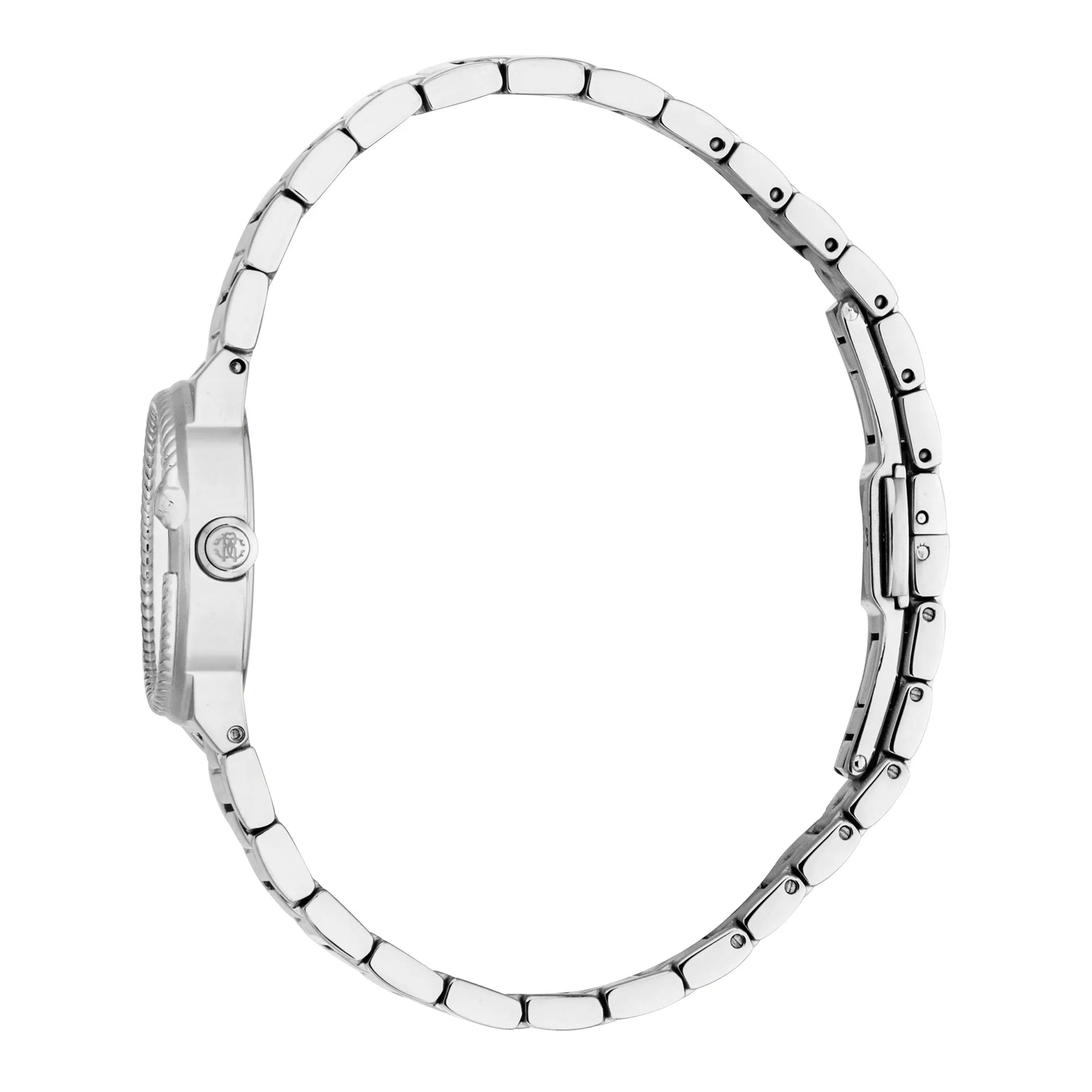 In the world of elegance and sophistication, where time is not just measured but celebrated, emerges a creation that embodies the essence of refined luxury. Crafted in the heart of Swiss precision, this Roberto Cavalli Lady watch is a testament to the art of horology. Its round case, bathed in a lustrous silver grey, captures the light with every movement, echoing the grace of the woman who wears it. With a case diameter of 26mm, it sits delicately on the wrist, a subtle yet striking statement of style. The mineral crystal shields the dial, ensuring clarity and resilience, while the pull & push crown offers seamless adjustment. The stainless steel band, also in silver grey, wraps around the wrist with a butterfly deployant clasp, providing both security and elegance. The dial, a harmonious continuation of the silver grey theme, is a canvas of sophistication, where three hands dance gracefully, powered by the reliable GL32 quartz movement. Water-resistant up to 50 meters, this timepiece is not just an accessory but a companion for life's adventures. Designed for the fashion-forward woman, it is a celebration of femininity and strength, a watch that does not merely tell time but tells a story of elegance and grace.