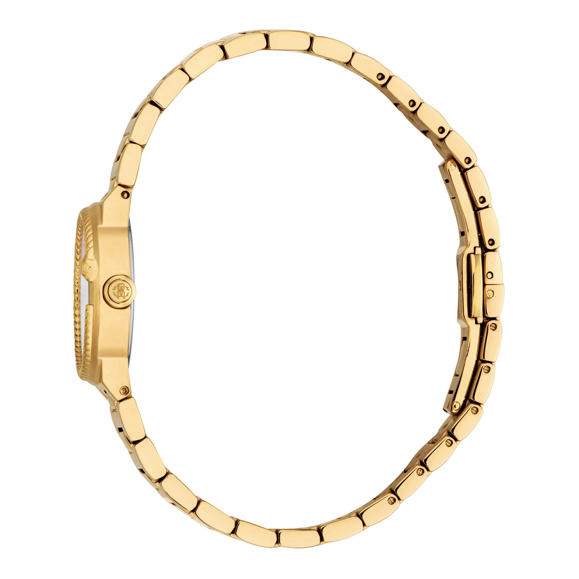 In the world of fashion, where elegance meets innovation, emerges a timepiece that embodies the essence of sophistication and style. Crafted in the heart of Swiss watchmaking, this Roberto Cavalli Lady watch is a testament to the brand's commitment to luxury and precision. Its round case, bathed in the opulent hue of yellow gold, captures the light with every movement, creating a mesmerizing dance of reflections. With a case diameter of 26mm, it sits gracefully on the wrist, a perfect companion for the modern woman who values both form and function. The mineral crystal protects a silver-grey dial, where three hands glide effortlessly, powered by the reliable GL32 quartz movement. This watch is not just a timekeeper, it's a statement of refined design, with a water resistance of up to 50 meters, ensuring it withstands the rigors of daily life. The stainless steel band, also in yellow gold, wraps around the wrist with a butterfly deployant clasp, offering both security and ease of wear. The push-button mechanism adds a touch of modernity to its classic allure. This Roberto Cavalli Lady watch is more than an accessory, it's an embodiment of timeless elegance, a piece that speaks to the heart of fashion with every tick of its hands.