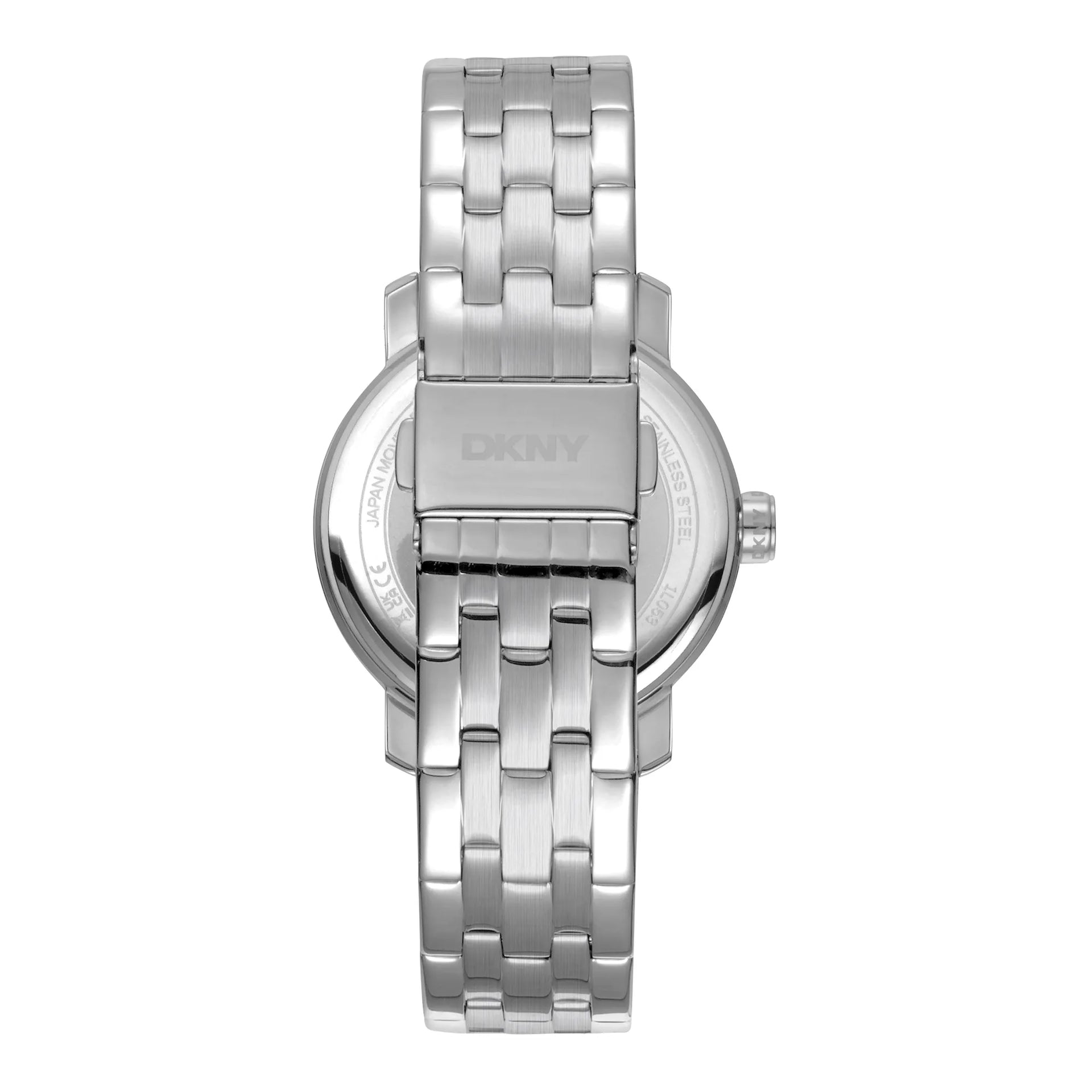 In the heart of urban elegance, where fashion meets functionality, the DKNY Chambers Maxi watch emerges as a beacon of style for the modern woman. Crafted with precision, this timepiece embodies the essence of contemporary sophistication. Its round case, bathed in a sleek silver grey hue, captures the light with a subtle shimmer, echoing the dynamic spirit of the city. The 36mm diameter strikes a perfect balance between bold presence and graceful wearability, making it an ideal accessory for any occasion. Water-resistant up to 50 meters, it promises reliability whether you're navigating the bustling streets or enjoying a serene day by the water. The mineral crystal face offers a clear view of the dial, which is a harmonious extension of the case's silver grey palette, creating a seamless visual flow. The pull & push crown adds a touch of practicality, ensuring easy time adjustments. Encircling the wrist with a stainless steel band, this watch exudes a refined design, its silver grey tones mirroring the case for a cohesive look. The butterfly deployant clasp with a push-button ensures a secure fit, combining convenience with elegance. Powered by a precise quartz movement, the watch features a classic 3-hand display, offering a timeless approach to timekeeping. The DKNY Chambers Maxi watch is not just an accessory, it's a statement of fashion-forward thinking, a testament to the wearer's impeccable taste and appreciation for the finer things in life.