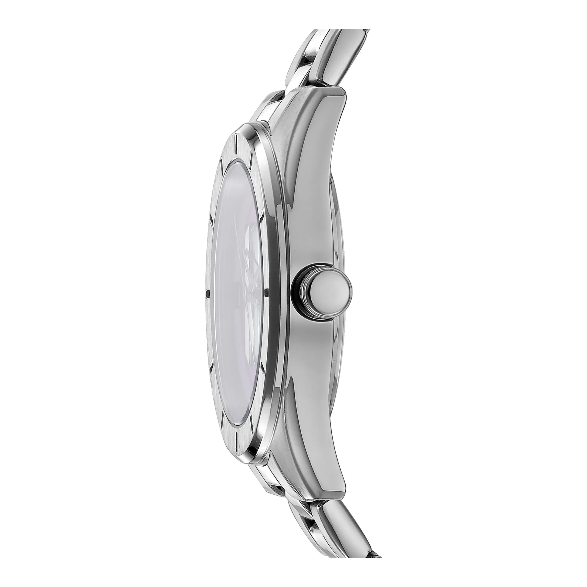 In the bustling heart of New York City, where fashion meets function, emerges a timepiece that embodies the spirit of modern elegance—the DKNY Chambers Midi. Crafted with precision and a keen eye for style, this watch is a testament to the sophisticated woman who values both form and function. Its round case, bathed in a sleek silver grey hue, captures the essence of urban chic, while the 34mm diameter ensures a perfect balance between subtlety and statement. The mineral crystal face offers a clear view of the dial, which mirrors the case's silver grey tone, creating a seamless aesthetic that is both contemporary and timeless. The stainless steel band, also in silver grey, wraps around the wrist with a refined grace, secured by a butterfly deployant clasp with a push-button for ease and security. Powered by a reliable quartz movement, the watch features a classic 3-hand display, making it as practical as it is stylish. With a water resistance of up to 50 meters, it is designed to accompany you through the myriad adventures of city life, from a morning meeting to an evening gala. The DKNY Chambers Midi is more than just a watch, it is a reflection of the dynamic, fashion-forward woman who wears it, a symbol of her journey through the ever-evolving landscape of style and sophistication.