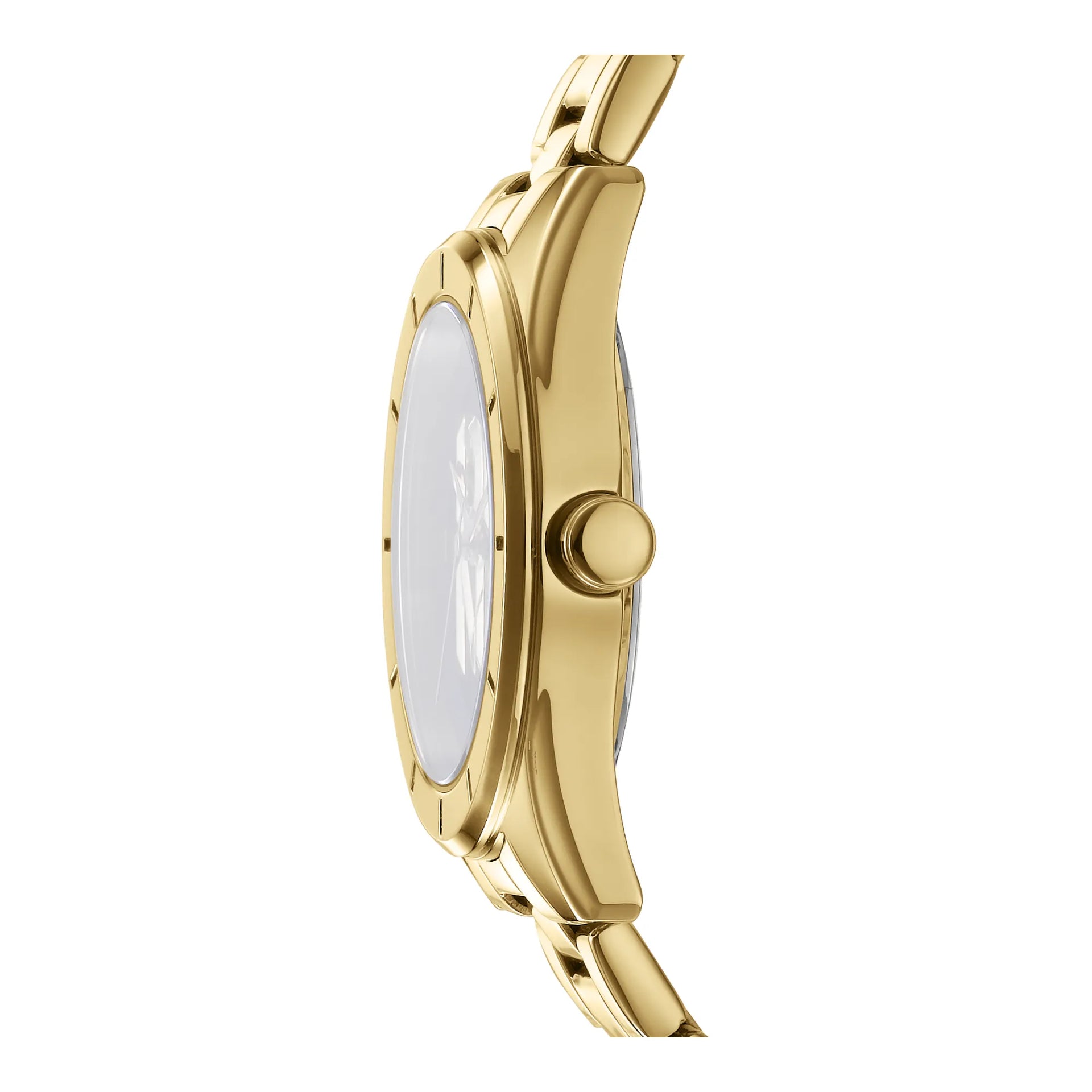 In the heart of urban elegance, where fashion meets function, the DKNY Chambers Midi watch emerges as a beacon of style and sophistication. Crafted in a round silhouette, its yellow gold case exudes a warm, luxurious glow, perfectly complementing the modern woman's wardrobe. With a case diameter of 34mm, it strikes a harmonious balance between bold presence and delicate grace. The silver-grey dial, a canvas of understated glamour, is adorned with three hands powered by precise quartz movement, ensuring time is always on your side. The mineral crystal offers a clear view, while the pull & push crown provides seamless adjustment. Encircling the wrist with a stainless steel band, also in yellow gold, this timepiece is a testament to refined design. The butterfly deployant clasp with a push-button closure ensures a secure and comfortable fit, making it an ideal companion for any occasion. With a water resistance of up to 50 meters, it stands ready to accompany you through life's adventures, whether you're navigating the bustling city streets or enjoying a serene moment by the water. This DKNY watch is not just an accessory, it's a statement of fashion-forward thinking, embodying the spirit of a woman who knows her style and isn't afraid to show it.