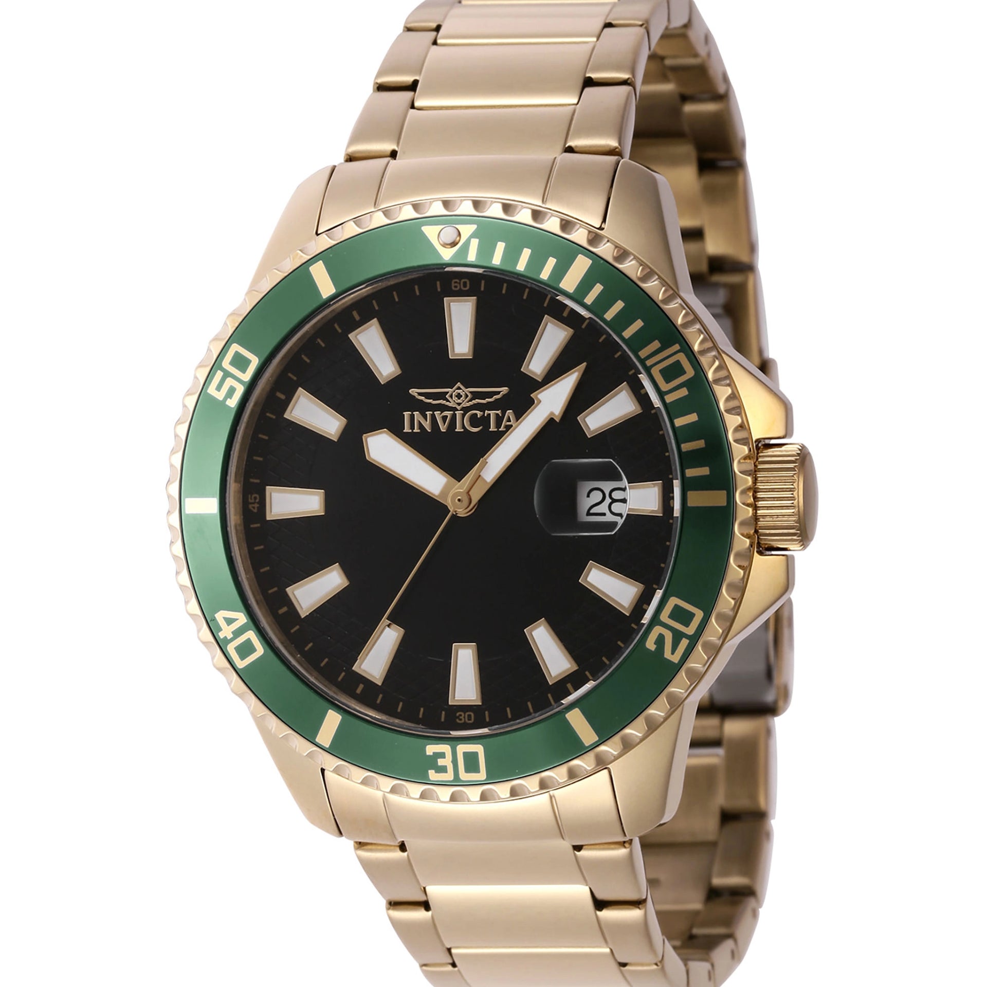 Unleash your true self with the Invicta Pro Diver, a timepiece crafted for the modern man who commands attention. This isn't just a casual watch, it's an extension of your powerful identity, a silent testament to your adventurous spirit. Its brilliant yellow gold finish, boldly contrasted by a captivating green bezel, signals distinction and confidence with every glance. Feel the undeniable presence on your wrist, inspiring every move. Imagine conquering your day, from vital meetings to spontaneous escapes, always knowing your time is uniquely yours.