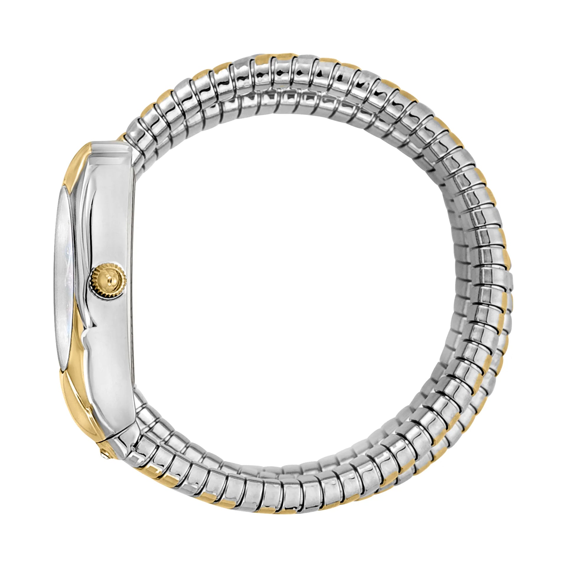 In the realm of timepieces, where elegance meets audacity, emerges a creation that defies convention with its unique allure. Crafted in the heart of Swiss precision, this Just Cavalli Watch from the Signature Snake collection embodies a daring spirit and a refined design. Its irregular case shape, bathed in a sophisticated silver grey, captures the essence of modern fashion while whispering tales of timeless elegance. The stainless steel band, mirroring the case's silver hue, wraps around the wrist with a sense of grace, secured by a folding deployant clasp with a push-button for effortless sophistication. The antique white dial, a canvas of subtlety, is adorned with two hands that glide with quartz precision, driven by the GL22 caliber. This watch, with its water-resistant prowess, is not just a timekeeper but a statement of character and style. The mineral crystal shields its face, ensuring clarity and resilience, while the pull & push crown offers a touch of classic functionality. Designed for the modern woman who embraces fashion with a bold heart, this timepiece is a testament to the audacious spirit of Just Cavalli, where every tick echoes the rhythm of a life lived with passion and flair.