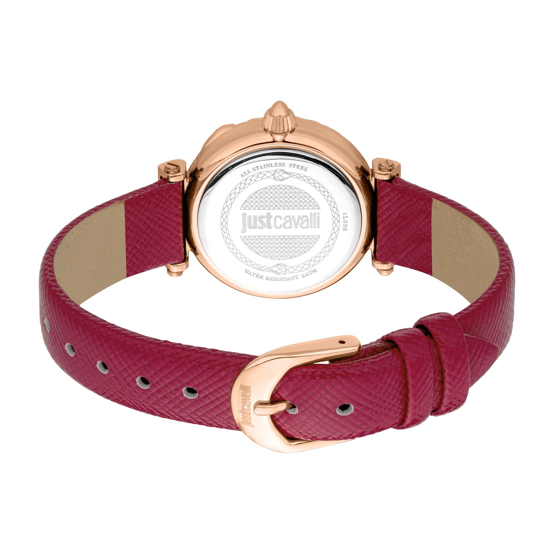 In the realm of fashion, where elegance meets audacity, emerges a timepiece that captures the essence of modern femininity with a touch of daring flair. Crafted in the heart of style innovation, this Just Cavalli Watch from the JC1L332 Curiosa collection is a testament to the brand's commitment to bold design and exquisite craftsmanship. The round case, bathed in a luxurious rose gold hue, exudes a sense of timeless sophistication, while its 30mm diameter ensures a delicate yet striking presence on the wrist. The heather violet leather band, paired with a matching dial, introduces a pop of color that speaks to the vibrant spirit of contemporary fashionistas. This harmonious blend of hues is not just a visual delight but a statement of individuality and confidence. The mineral crystal protects the dial, ensuring clarity and durability, while the pull & push crown offers ease of adjustment. With a water resistance of up to 50 meters, this watch is as practical as it is stylish, ready to accompany you through life's adventures. The quartz movement guarantees precision, and the three-hand display provides a classic touch to this modern masterpiece. Secured with a tang buckle, this watch is not just an accessory but a companion that celebrates the audacious spirit of those who dare to stand out.