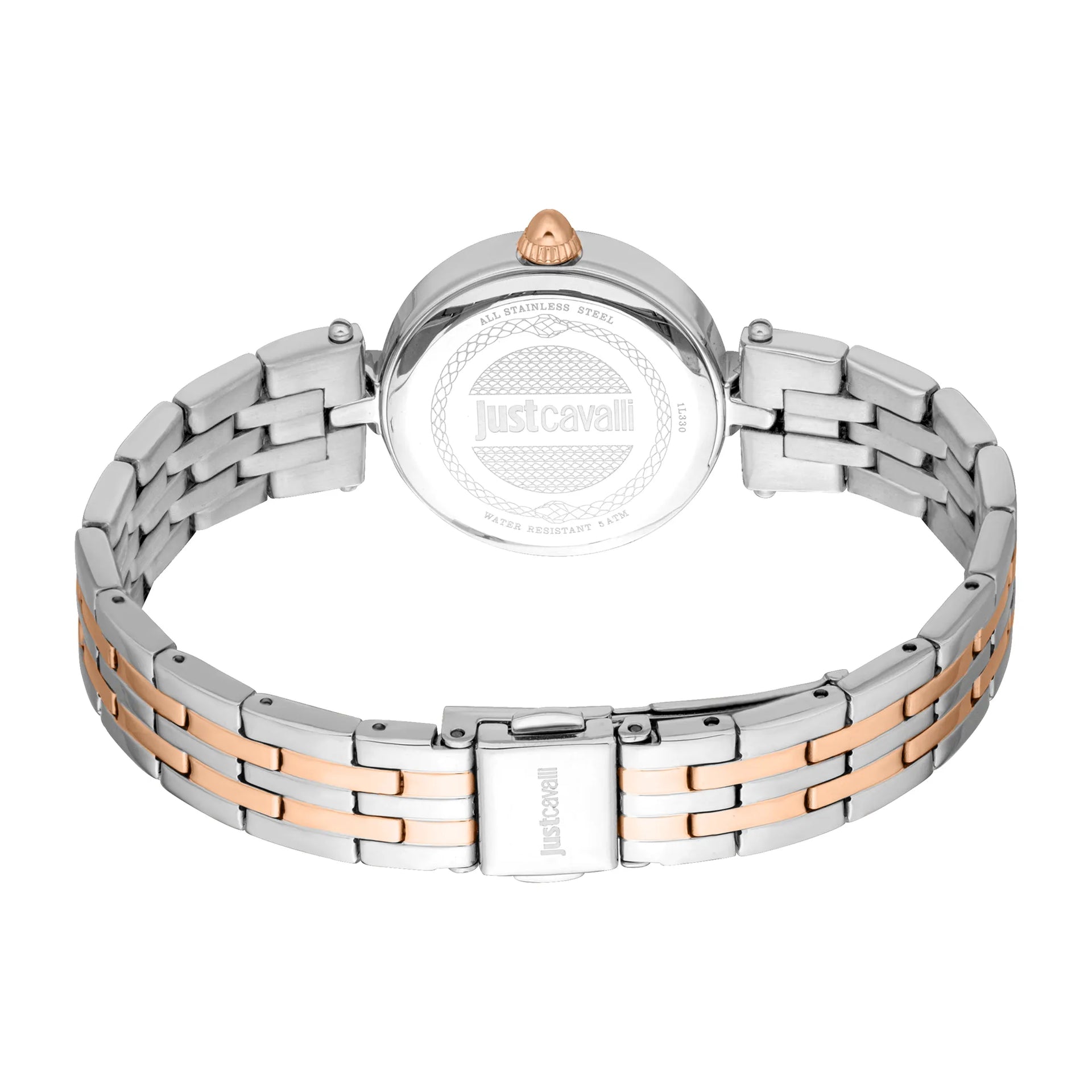 In the realm of fashion, where elegance meets audacity, emerges a timepiece that captures the essence of sophistication and style. Crafted in the heart of Swiss watchmaking, this Just Cavalli Watch from the JC1L330 Mini Attraente collection is a testament to refined design and exquisite craftsmanship. Its round case, bathed in the warm glow of rose gold, exudes a timeless allure, perfectly complementing the delicate wrist of the modern woman. With a case diameter of 28mm, it strikes the perfect balance between subtlety and statement. The silver-grey dial, reminiscent of moonlit nights, is a canvas of elegance, where three hands dance gracefully, powered by precise quartz movement. The mineral crystal shields this masterpiece, ensuring clarity and durability, while the pull & push crown offers seamless functionality. The stainless steel band, also in rose gold, wraps around the wrist with a sense of luxury, secured by a folding deployant clasp with a push-button for ease and comfort. Water-resistant up to 50 meters, this watch is not just an accessory but a companion for life's adventures. Its fashion-forward design speaks to those who dare to stand out, making it an essential piece for the bold and the beautiful.