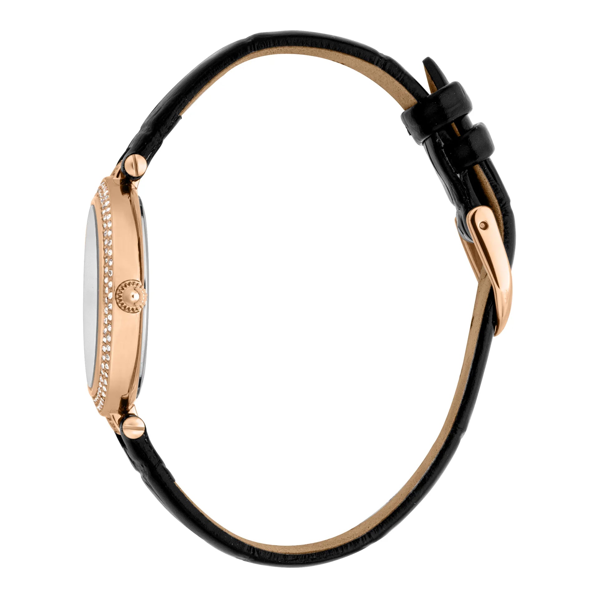 In the realm of timepieces, where elegance meets audacity, emerges a creation that captures the essence of modern sophistication. Crafted in the heart of Swiss watchmaking, this Just Cavalli Watch from the JC1L274 Savoca collection is a testament to the brand's commitment to fashion-forward design. The round case, bathed in a luxurious rose gold hue, exudes a warmth that complements the refined design of the watch. With a case diameter of 32mm, it sits gracefully on the wrist, a perfect companion for the discerning woman who values both style and substance. The mineral crystal offers a clear view of the silver-grey dial, where three hands dance in a precise quartz movement, a symphony of timekeeping excellence. The black leather band, secured with a tang buckle, adds a touch of classic elegance, while the water resistance of up to 50 meters ensures that this watch is as practical as it is beautiful. The pull & push crown invites interaction, a tactile reminder of the craftsmanship that lies within. This Just Cavalli Watch is not just an accessory, it is a statement of individuality, a celebration of the bold and the beautiful. Whether worn with a casual ensemble or an evening gown, it promises to elevate any outfit with its timeless allure.