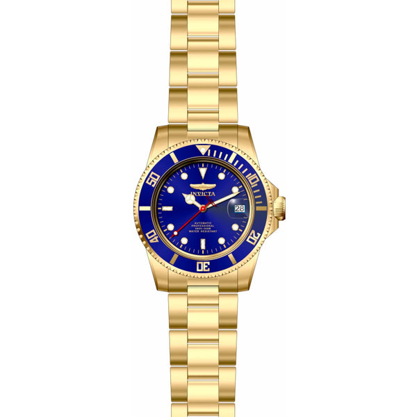 In the world of horology, where precision meets artistry, the Invicta Pro Diver emerges as a beacon of elegance and functionality. Crafted in the heart of innovation, this timepiece is a testament to the seamless blend of style and performance. Its round case, bathed in a luxurious yellow gold hue, captures the eye with a diameter of 40mm, offering a perfect balance between boldness and sophistication. The deep blue dial, reminiscent of the ocean's depths, adds a pop of color that speaks to the adventurous spirit within. Designed for the modern man who values both form and function, this watch boasts a water resistance of up to 200 meters, making it an ideal companion for both casual outings and underwater explorations. The hardlex crystal and screw-down crown ensure durability, while the transparent back reveals the intricate dance of the NH35A caliber, a mechanical marvel with 24 jewels that powers this automatic masterpiece. The stainless steel band, also in yellow gold, wraps around the wrist with a folding deployant clasp and safety lock, ensuring both comfort and security. With an analogue display and a date calendar, this Invicta Pro Diver is not just a watch, it's a statement of refined design and timeless elegance, crafted for those who dare to explore the depths of style and adventure.