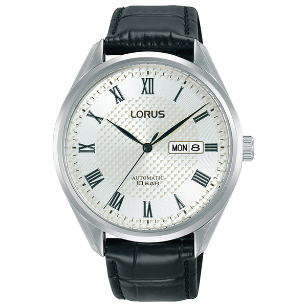 In the world of horology, where precision meets elegance, emerges a timepiece that embodies the essence of timeless sophistication. Crafted with meticulous attention to detail, this Lorus Automatic watch is a testament to the art of watchmaking. Its round case, bathed in a refined silver grey hue, exudes a classic charm that is both understated and captivating. With a case diameter of 42mm, it strikes the perfect balance between presence and subtlety, making it an ideal companion for the discerning gentleman. The mineral crystal offers a clear window to the soul of the watch, revealing a silver grey dial that harmonizes seamlessly with the case. The dial, adorned with three hands and a day and date calendar, is a symphony of functionality and style. Beneath its elegant exterior lies a mechanical heart, an automatic movement that beats with the rhythm of precision. The pull & push crown invites you to interact with this masterpiece, while the black leather band, secured with a tang buckle, wraps comfortably around the wrist, adding a touch of classic sophistication. With a water resistance of up to 100 meters, this watch is as versatile as it is elegant, ready to accompany you from boardroom meetings to weekend adventures. Weighing a mere 80 grams, it offers a lightweight experience without compromising on its refined design. This Lorus Automatic watch is not just a timekeeping instrument, it is a statement of style, a reflection of the wearer's appreciation for the finer things in life.