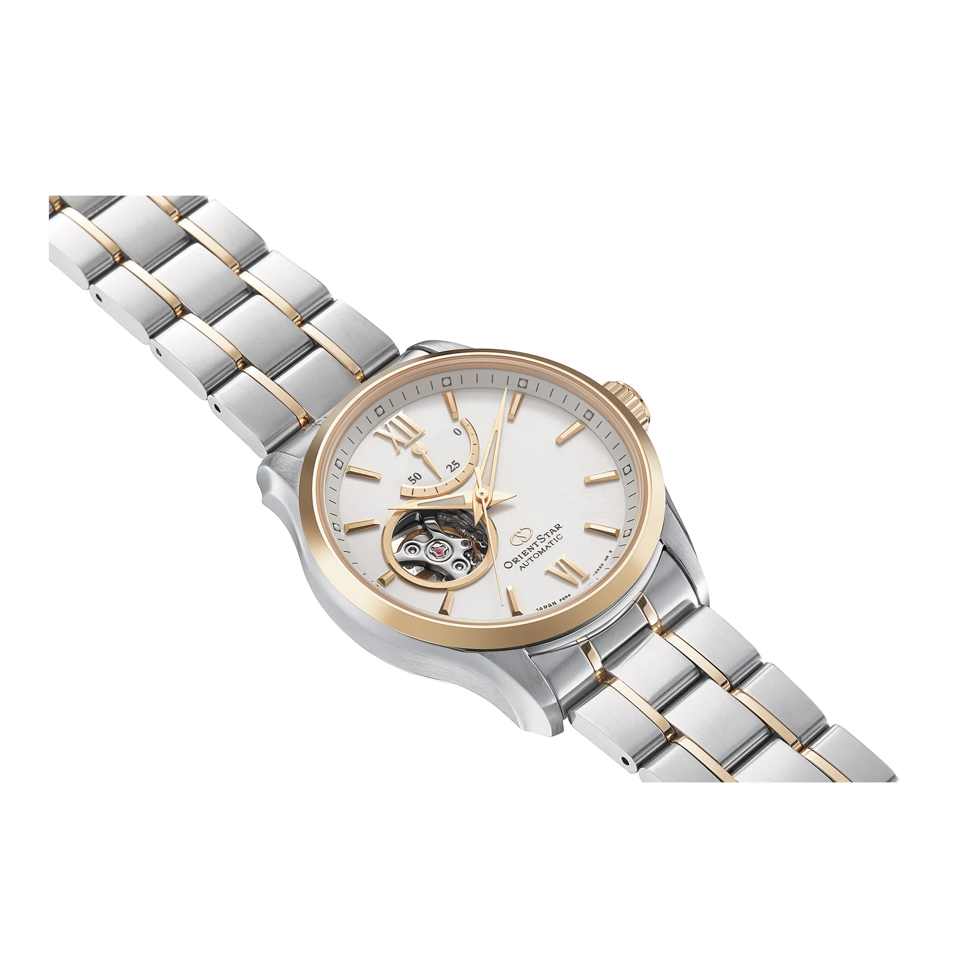 Embrace timeless sophistication with this ORIENT STAR masterpiece, crafted for the discerning male. This casual yet captivating timepiece speaks volumes about your unique identity. Its stunning bi-color design, paired with a mesmerizing open-heart dial, reveals the intricate dance of Japanese craftsmanship, a true testament to precision and passion. Feel the quiet power and understated elegance it bestows, perfectly accompanying you from a relaxed brunch to an important evening, leaving a lasting impression with every glance.