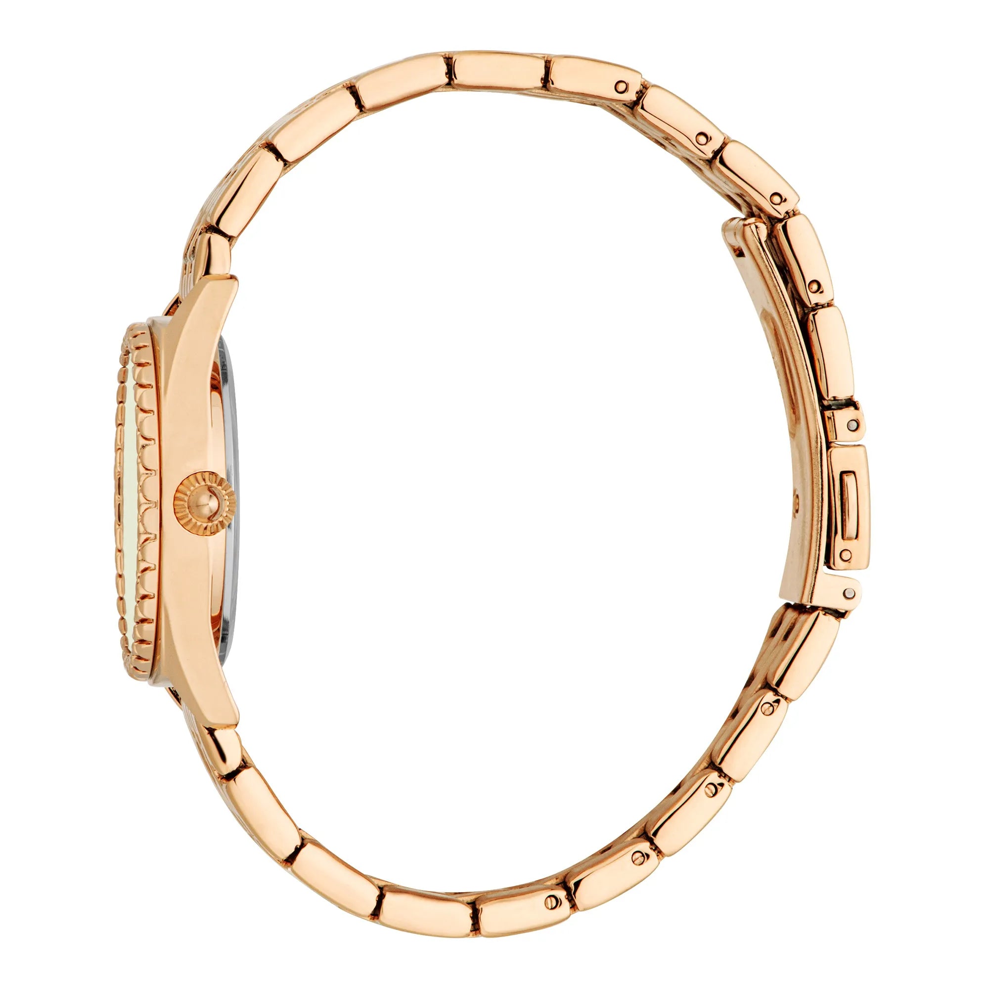 In the world of fashion, where elegance meets audacity, emerges a timepiece that captures the essence of bold sophistication—the Just Cavalli Watch from the JC1L312 Indomitable Animalier collection. Crafted in a refined round shape, its rose gold case exudes a warm, luxurious glow, perfectly complementing the modern woman's style. The 30mm diameter strikes a balance between subtlety and statement, making it an ideal accessory for any occasion. With a water-resistant design, this watch is as practical as it is stylish, ready to accompany you through life's adventures. The mineral crystal protects the olive green dial, a hue that whispers of nature's tranquility while maintaining a chic allure. The stainless steel band, also in rose gold, wraps elegantly around the wrist, secured by a butterfly deployant clasp with a push-button for ease and comfort. Inside, the quartz movement ensures precision, while the date calendar adds a touch of practicality. The three-hand display, driven by the VJ32 caliber, offers a seamless blend of functionality and fashion. This Just Cavalli Watch is not just an accessory, it's a statement of individuality and grace, a testament to the fearless spirit of those who wear it.