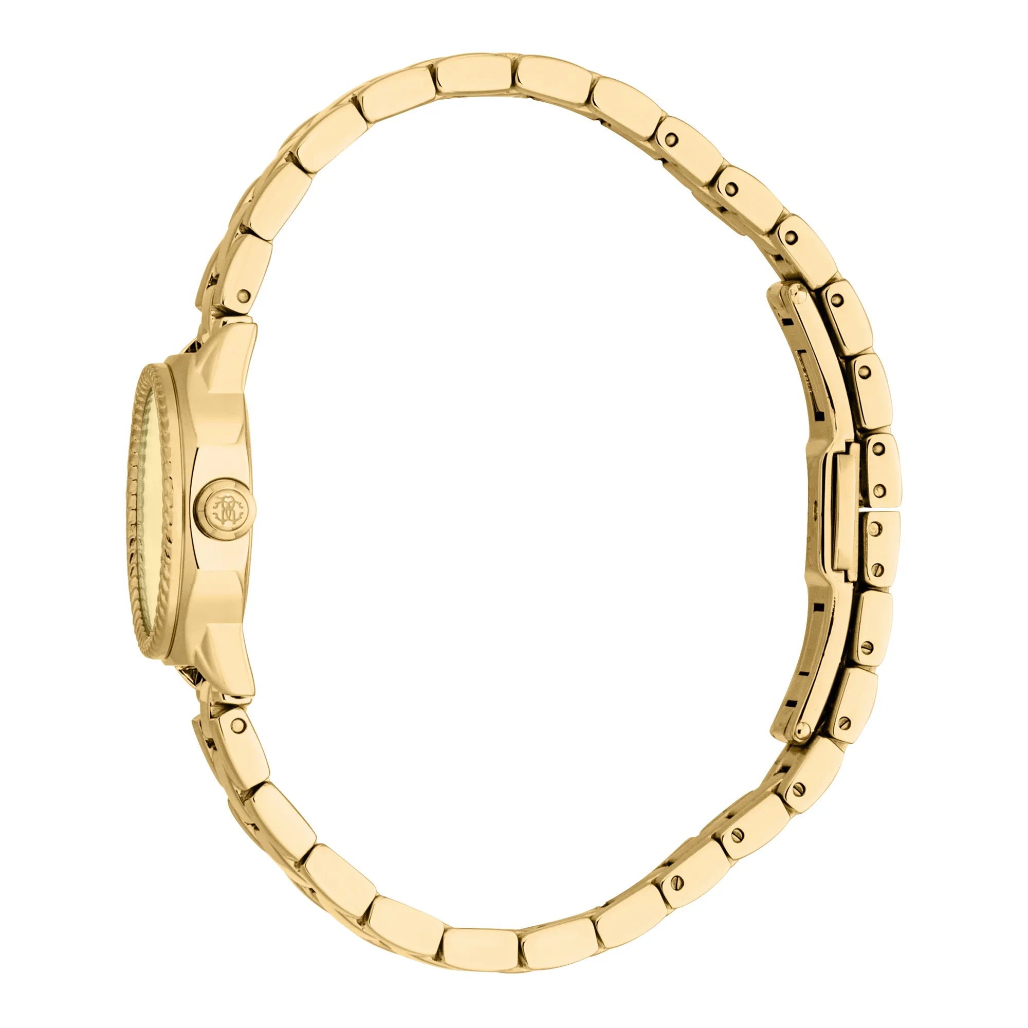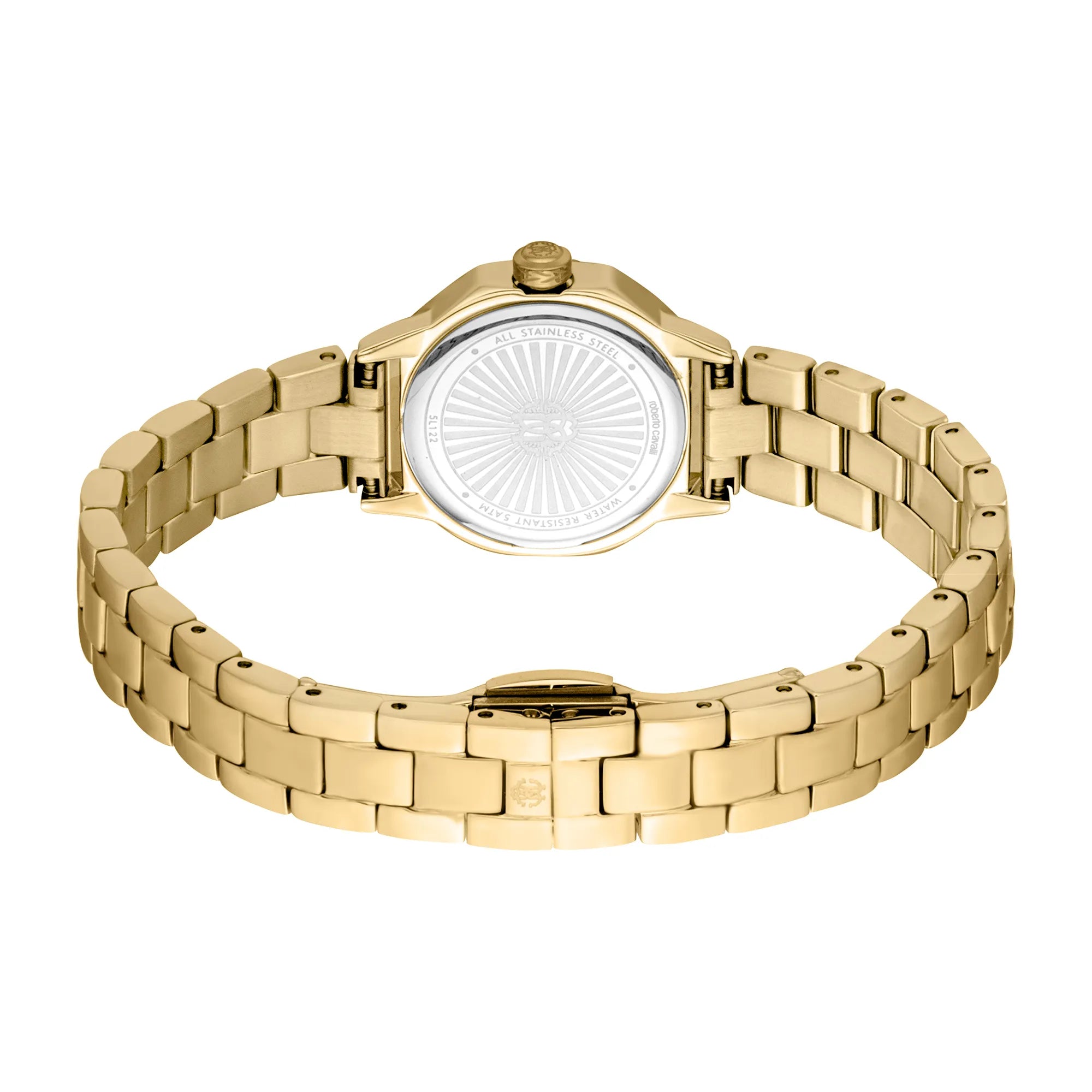 In the world of fashion, where elegance meets innovation, emerges a timepiece that captures the essence of sophistication and style. Crafted in the heart of Swiss watchmaking, this Roberto Cavalli Lady watch is a testament to refined design and exquisite craftsmanship. Its octagonal case, bathed in the warm glow of yellow gold, exudes a timeless allure that is both bold and graceful. With a case diameter of 24mm, it sits delicately on the wrist, a perfect companion for the modern woman who appreciates the finer things in life. The champagne dial, a subtle nod to luxury, is adorned with three hands powered by a precise quartz movement, ensuring that time is always on your side. The mineral crystal offers a clear view of the dial, while the pull & push crown adds a touch of practicality to this elegant piece. The stainless steel band, also in yellow gold, wraps around the wrist with a butterfly deployant clasp with a push-button, offering both security and ease of wear. Water-resistant up to 50 meters, this watch is as versatile as it is beautiful, ready to accompany you from the boardroom to a night out on the town. With its exquisite design and impeccable functionality, this Roberto Cavalli Lady watch is not just a timepiece, it is a statement of style and sophistication, a reflection of the woman who wears it.