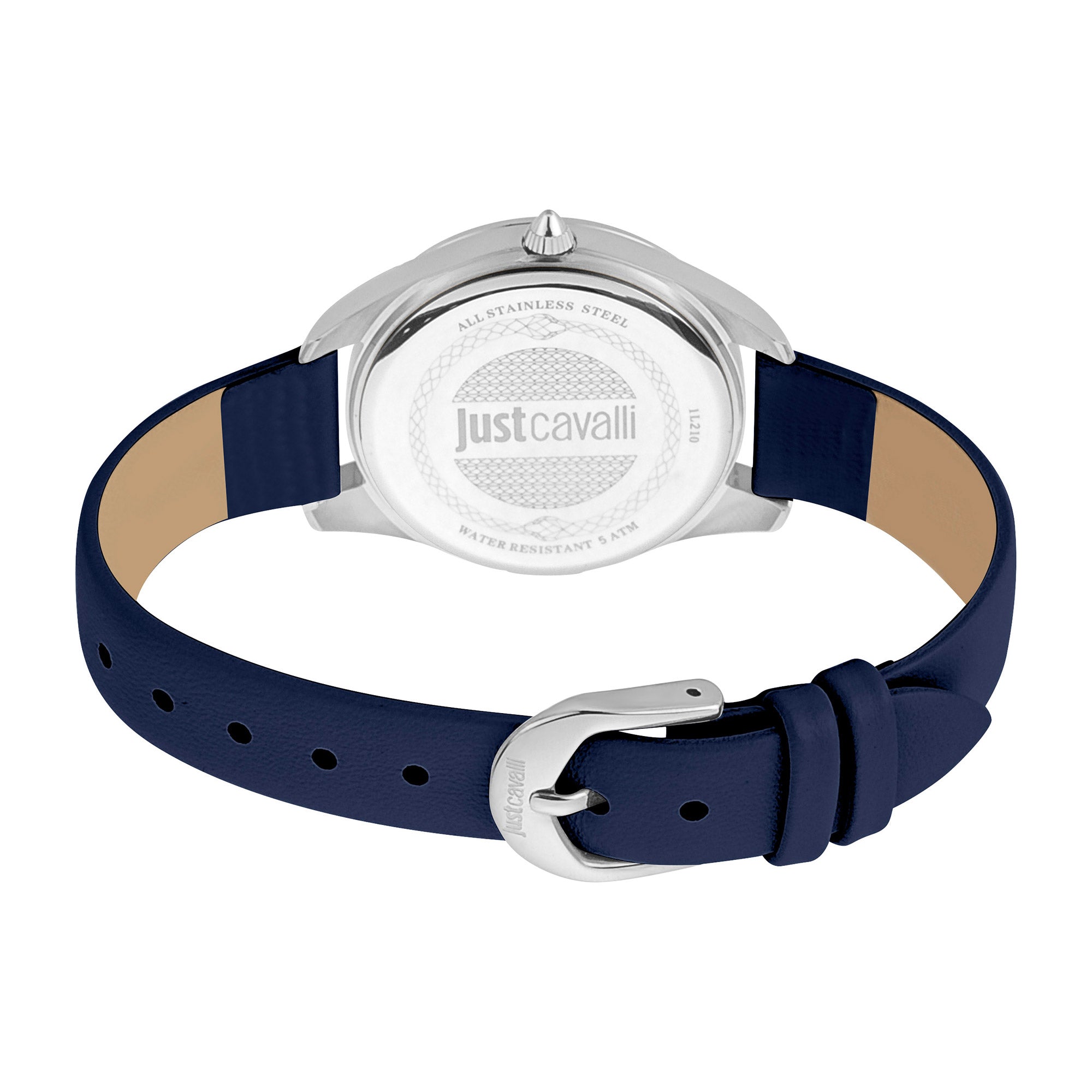 In the realm of fashion, where elegance meets audacity, emerges a timepiece that captures the essence of the wild with a touch of sophistication. This Just Cavalli Watch, from the illustrious Just Cavalli Animalier collection, is a tribute to the fierce spirit of the panther, embodying both grace and power. Crafted with a refined design, the round silver-grey case, measuring a delicate 32mm, houses a vibrant blue dial that echoes the depths of the ocean. The mineral crystal shields the dial, ensuring clarity and resilience, while the pull & push crown offers seamless functionality. A blue leather band, secured with a tang buckle, wraps around the wrist like a gentle embrace, adding a pop of color that speaks to the bold and adventurous. The quartz movement, powered by the GL34 caliber, ensures precision and reliability, making it a perfect companion for the modern woman who navigates life with style and confidence. With a water resistance of up to 50 meters, this watch is not just an accessory but a statement of daring elegance, ready to accompany you through life's myriad adventures.
