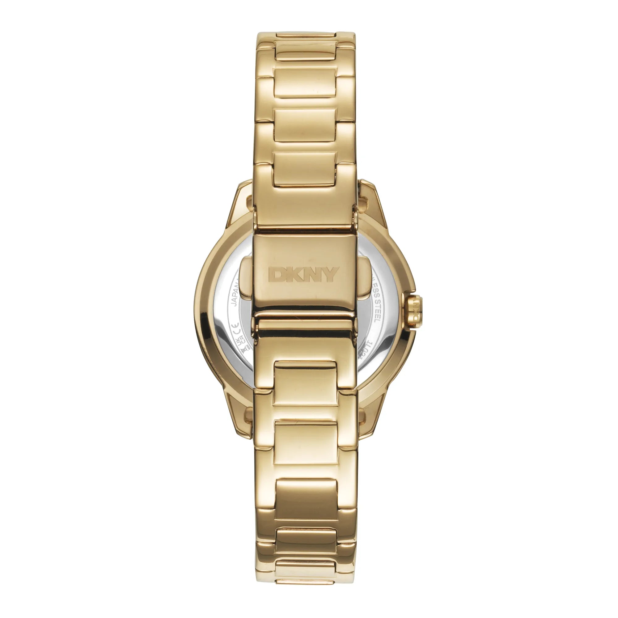 In the heart of the bustling cityscape, where fashion meets function, emerges a timepiece that embodies the essence of urban elegance. The DKNY Park Ave Logo watch is a testament to the modern woman's flair for style and sophistication. Crafted in a refined round shape, its yellow gold case gleams with a luxurious allure, perfectly complementing the champagne dial that whispers understated glamour. With a case diameter of 30mm, it sits gracefully on the wrist, a subtle yet striking statement of fashion-forward thinking. The stainless steel band, also in a matching yellow gold hue, wraps around the wrist with a sense of continuity and harmony, secured by a butterfly deployant clasp with a push-button for ease and security. This watch is not just about looks, it offers practicality with a water resistance of up to 50 meters, making it a reliable companion for the dynamic lifestyle. The mineral crystal protects the dial, ensuring clarity and durability, while the pull & push crown allows for effortless time adjustments. Powered by precise quartz movement, the three-hand display keeps time with impeccable accuracy. This DKNY watch is more than an accessory, it's a reflection of a woman's inner strength and her ability to navigate the world with grace and confidence.
