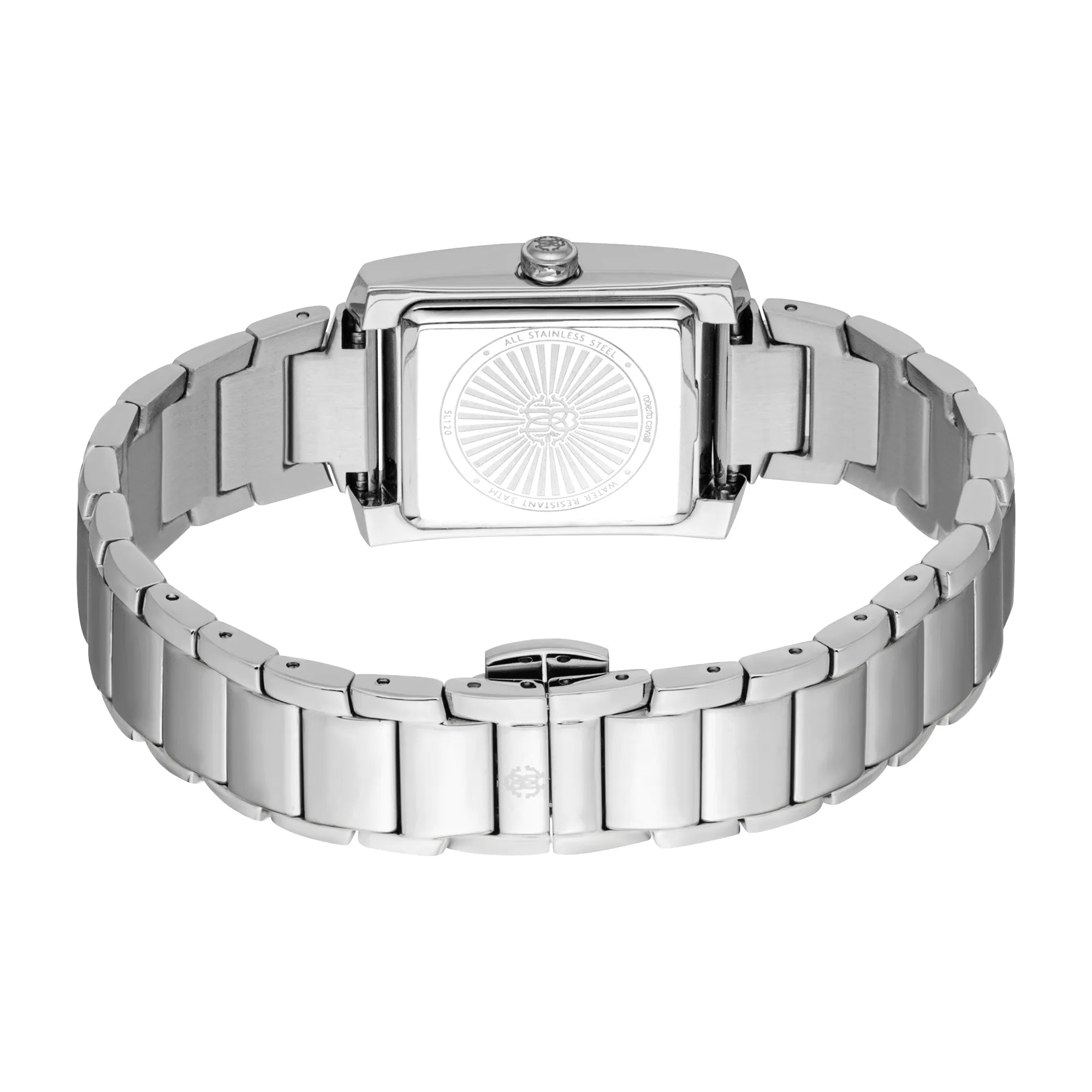 In the world of fashion, where elegance meets innovation, emerges a timepiece that captures the essence of sophistication and style. Crafted in Switzerland, this Roberto Cavalli Lady watch is a testament to refined design and exquisite craftsmanship. Its rectangular case, bathed in a lustrous silver grey, exudes a timeless allure, perfectly complementing the modern woman who wears it. The stainless steel band, also in silver grey, wraps around the wrist with a sense of grace, secured by a butterfly deployant clasp with a push-button for ease and comfort. The dial, a vibrant pink, adds a pop of color that speaks to a playful yet chic aesthetic, making it a standout piece in any ensemble. Beneath its mineral crystal, the watch houses a precise quartz movement, driven by the GL34 caliber, ensuring accurate timekeeping. The three-hand display glides effortlessly across the dial, a subtle nod to the seamless blend of form and function. Water-resistant, this watch is as practical as it is beautiful, ready to accompany its wearer through life's adventures. With a pull & push crown, adjusting the time becomes an elegant ritual, a moment of connection with the artistry of Swiss watchmaking. This Roberto Cavalli Lady watch is more than just an accessory, it is a statement of individuality and a celebration of the bold, confident spirit of the modern woman.