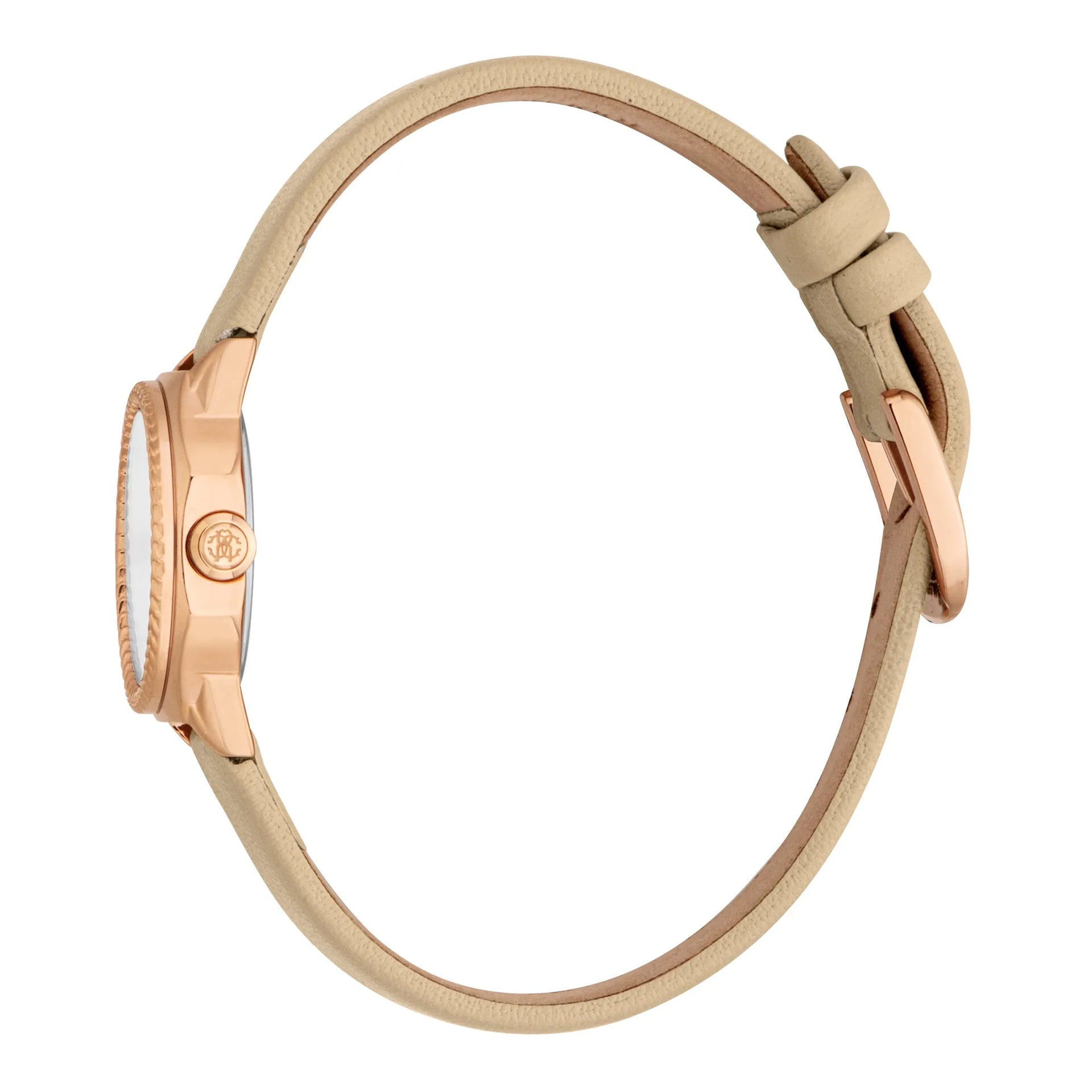 In der Welt der Mode, in der Eleganz auf Innovation trifft, entsteht eine Uhr, die das Wesen von Raffinesse und Stil einfängt. Gefertigt im Herzen der Schweizer Uhrmacherkunst, ist diese Roberto Cavalli Lady Uhr ein Zeugnis für verfeinertes Design und exquisite Handwerkskunst. Ihr achteckiges Gehäuse, getaucht in einen luxuriösen Roségoldton, strahlt eine zeitlose Anziehungskraft aus und ergänzt perfekt das zarte Handgelenk der modernen Frau. Mit einem Gehäusedurchmesser von 24 mm findet sie eine harmonische Balance zwischen Zurückhaltung und Präsenz und ist somit ein ideales Accessoire für jeden Anlass. Das silbergraue Zifferblatt, geschmückt mit drei Zeigern, bietet einen ruhigen Hintergrund, der die anmutige Ästhetik der Uhr unterstreicht. Eingefasst in Mineralglas verspricht sie Haltbarkeit und bewahrt gleichzeitig ein schlankes Erscheinungsbild. Die Pull & Push-Krone fügt einen Hauch von Praktikabilität hinzu und sorgt für einfache Handhabung. Das beige Lederarmband, gesichert mit einer Dornschließe, schmiegt sich bequem um das Handgelenk und verleiht eine Schicht zurückhaltender Eleganz. Angetrieben von einem präzisen Quarzwerk mit GL32-Kaliber garantiert diese Uhr genaue Zeitmessung, während ihre Wasserdichtigkeit bis zu 50 Meter für Sicherheit bei abenteuerlustigen Aktivitäten sorgt. Diese Roberto Cavalli Lady Uhr ist nicht nur eine Uhr, sondern ein Statement für zukunftsorientiertes Denken in der Mode, eine Feier der Weiblichkeit und ein Symbol für den tadellosen Geschmack der Trägerin.