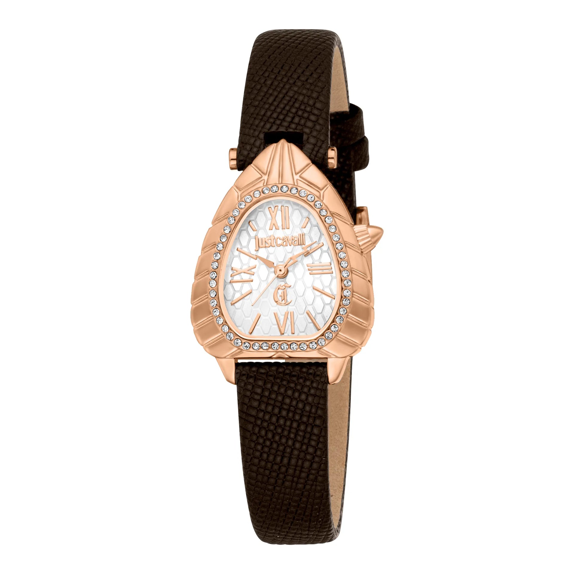 In the realm of fashion, where elegance meets audacity, emerges a timepiece that captures the essence of sophistication and daring style. Crafted in the heart of Italian design, this Just Cavalli Watch from the Animalier collection is a testament to the brand's flair for the extraordinary. The oval case, bathed in a luxurious rose gold hue, exudes a sense of timeless allure, while its compact 24mm diameter ensures a delicate yet striking presence on the wrist. The mineral crystal face, coupled with a pull & push crown, offers a refined design that is both practical and stylish. The chocolate brown leather band, secured with a classic tang buckle, complements the watch's overall aesthetic, adding a touch of warmth and richness. The silver-grey dial, with its three-hand quartz movement, provides a subtle yet captivating contrast, embodying a modern elegance that is both chic and versatile. Water-resistant and designed for the fashion-forward woman, this watch is not just an accessory but a statement of individuality and grace. Its unique blend of materials and colors creates a harmonious balance, making it a perfect companion for any occasion. Whether you're attending a high-profile event or simply enjoying a day out, this Just Cavalli Watch is sure to turn heads and spark conversations, embodying the spirit of a woman who is confident, bold, and unafraid to express her unique style.