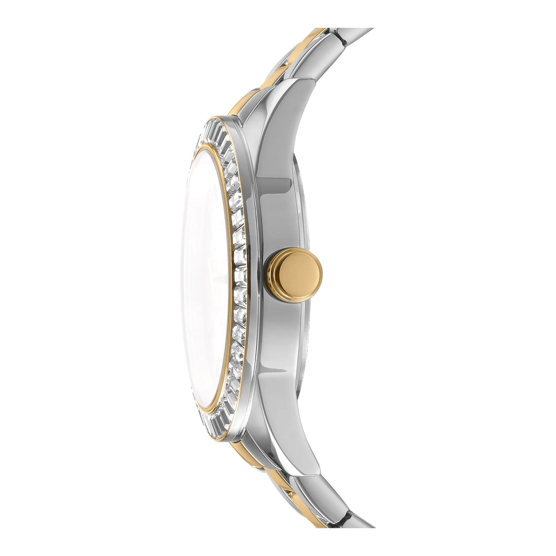 En el corazón de la elegancia urbana, el reloj DKNY Nolita Multi Glitz emerge como un faro de estilo contemporáneo y sofisticación. Elaborado en una elegante silueta redonda, su caja gris plateada y su correa de acero inoxidable a juego irradian un diseño refinado que captura la esencia de la feminidad moderna. El diámetro de la caja de 40 mm ofrece una presencia audaz pero elegante en la muñeca, mientras que el cristal mineral garantiza claridad y durabilidad. Con una resistencia al agua de hasta 50 metros, este reloj es tan versátil como estiloso, listo para acompañarte desde las bulliciosas calles de la ciudad hasta las serenas orillas. La esfera, una extensión armoniosa del tema gris plateado, es un lienzo de funcionalidad, con una pantalla multifunción con calendario de día y fecha, y un formato de hora de 24 horas. El cierre desplegable tipo mariposa con botón pulsador añade un toque de comodidad y seguridad, convirtiéndolo en una adición perfecta para cualquier conjunto. Impulsado por un movimiento de cuarzo preciso, este reloj es un testimonio del compromiso de DKNY de combinar moda con función. Ya sea que estés navegando un día laboral ocupado o disfrutando de un fin de semana relajado, el reloj Nolita Multi Glitz es tu compañero perfecto, encarnando el espíritu del vibrante estilo de vida de Nueva York con cada tic.