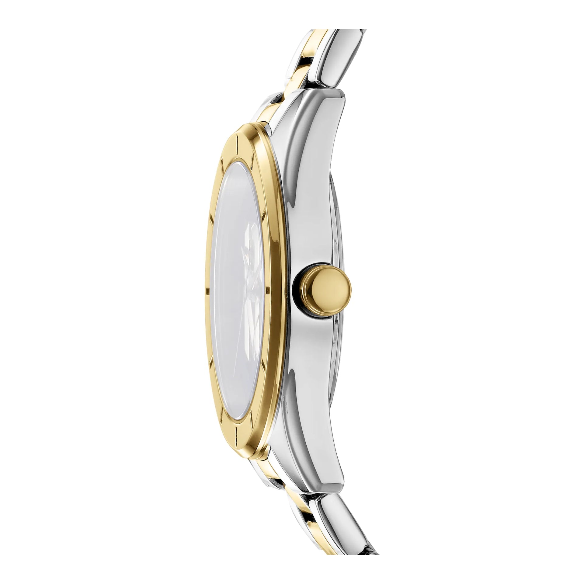 En el corazón de la elegancia urbana, donde la moda se encuentra con la función, surge un reloj que encarna el espíritu de la sofisticación moderna. El DKNY Chambers Midi, con su elegante silueta redonda, es un testimonio del diseño refinado que define el estilo contemporáneo. Elaborado en un brillante gris plateado, la caja y la correa se fusionan perfectamente en una unidad armoniosa, emanando una sensación de gracia atemporal. El diámetro de la caja de 34 mm ofrece un equilibrio perfecto, convirtiéndolo en un compañero ideal para la mujer vanguardista que valora tanto la forma como la función. Bajo el cristal mineral, la esfera revela un cautivador tono verde botella, un guiño a la elegancia de la naturaleza, mientras que el movimiento de cuarzo de tres agujas garantiza precisión en cada tic. El cierre desplegable tipo mariposa con botón pulsador añade un toque de conveniencia moderna, asegurando la correa de acero inoxidable con sofisticación sin esfuerzo. Con una resistencia al agua de hasta 50 metros, este reloj es tan versátil como elegante, listo para acompañarte desde las bulliciosas calles de la ciudad hasta los tranquilos retiros junto al agua. El DKNY Chambers Midi es más que un reloj, es una declaración de estilo, un reflejo de la personalidad única de quien lo lleva y una celebración del arte de medir el tiempo.