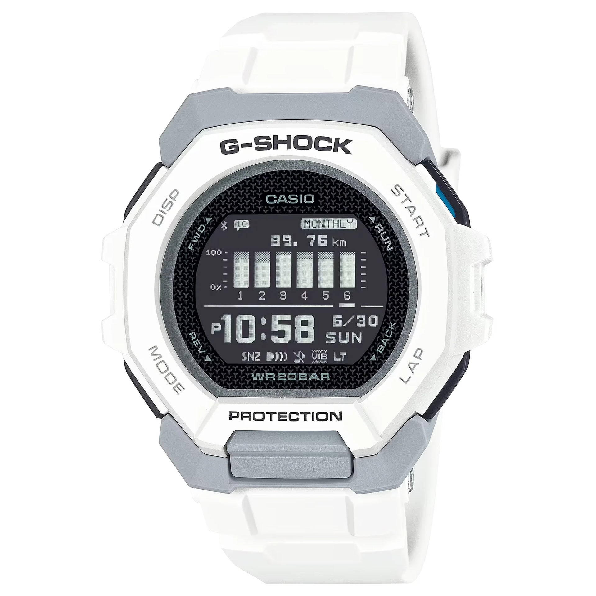 En el ámbito de la medición del tiempo, donde la precisión se encuentra con la aventura, surge una obra maestra que desafía lo ordinario. Diseñado para el hombre moderno que prospera con los desafíos, este reloj Casio G-Shock es un testimonio del espíritu de exploración. Su caja cuadrada, bañada en un tono blanco prístino, irradia una sensación de elegancia refinada, mientras que el diámetro sustancial de 47 mm llama la atención. Diseñado para las profundidades, cuenta con una resistencia al agua para buceadores de 200 metros, lo que lo convierte en un compañero indispensable para escapadas acuáticas. El cristal mineral protege una llamativa esfera negra, donde la precisión digital reina suprema. Con una corona de tirar y empujar, el reloj ofrece una funcionalidad sin interrupciones, complementada por una correa de resina blanca que se ajusta cómodamente alrededor de la muñeca, asegurada por una hebilla de lengüeta. Este reloj no solo se trata de dar la hora, es una sinfonía de funciones. Desde el cronógrafo hasta la alarma, el temporizador y la hora de 24 horas, satisface todas las necesidades. La función de hora mundial asegura que nunca estés fuera de sincronía, mientras que la luz incorporada ilumina tu camino. Un indicador de reserva de energía te mantiene informado, y la función GPS guía tu viaje. Para el entusiasta del fitness, el podómetro y el rastreador de consumo de calorías son herramientas invaluables. Este reloj Casio G-Shock es más que un accesorio, es una declaración de estilo y funcionalidad, un faro para aquellos que se atreven a superar límites y abrazar la emoción de lo desconocido.