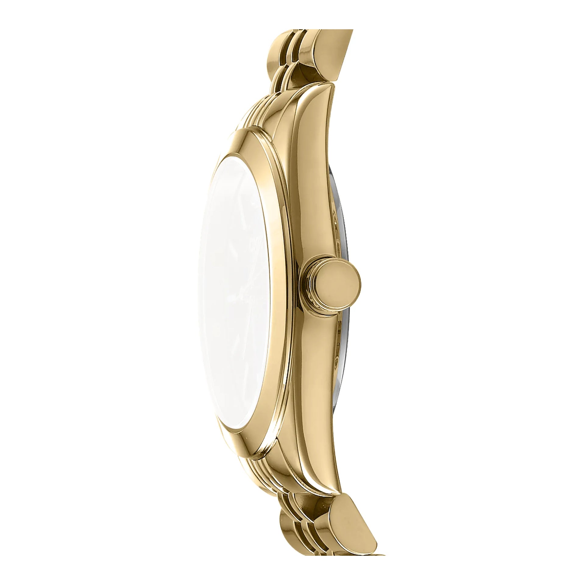 En el corazón del bullicioso paisaje urbano, donde la moda se encuentra con la funcionalidad, surge un reloj que encarna la esencia de la elegancia urbana: el DKNY Nolita Midi. Elaborado en una silueta redonda refinada, este reloj es un testimonio del estilo y la sofisticación de la mujer moderna. Su caja de oro amarillo, con un diámetro de 32 mm, irradia un brillo cálido y lujoso, que complementa perfectamente la correa de acero inoxidable que envuelve la muñeca con una gracia impecable. El cierre desplegable con botón pulsador asegura un ajuste seguro, permitiendo que quien lo lleva se mueva durante su día con confianza y facilidad. Bajo el cristal mineral, la esfera gris plateada captura la luz en una danza de reflejos sutiles, mientras que el movimiento de cuarzo de tres agujas mantiene el tiempo con precisión. Resistente al agua hasta 50 metros, este reloj es tan versátil como elegante, listo para acompañar a su portadora desde la oficina hasta una salida nocturna. El DKNY Nolita Midi es más que un reloj, es una declaración de pensamiento vanguardista en moda, una pieza que habla al corazón de la ciudad y al alma de la mujer que lo lleva.