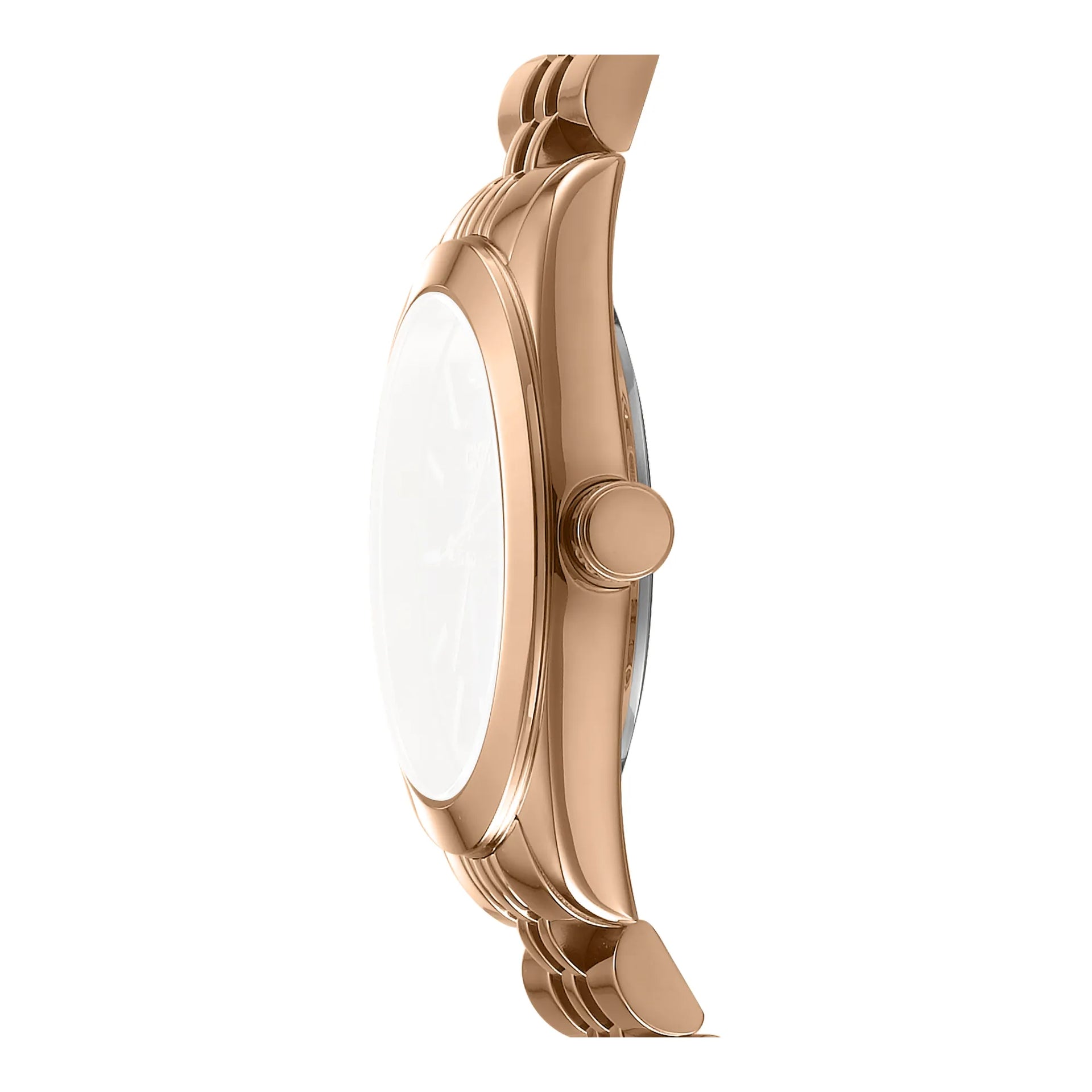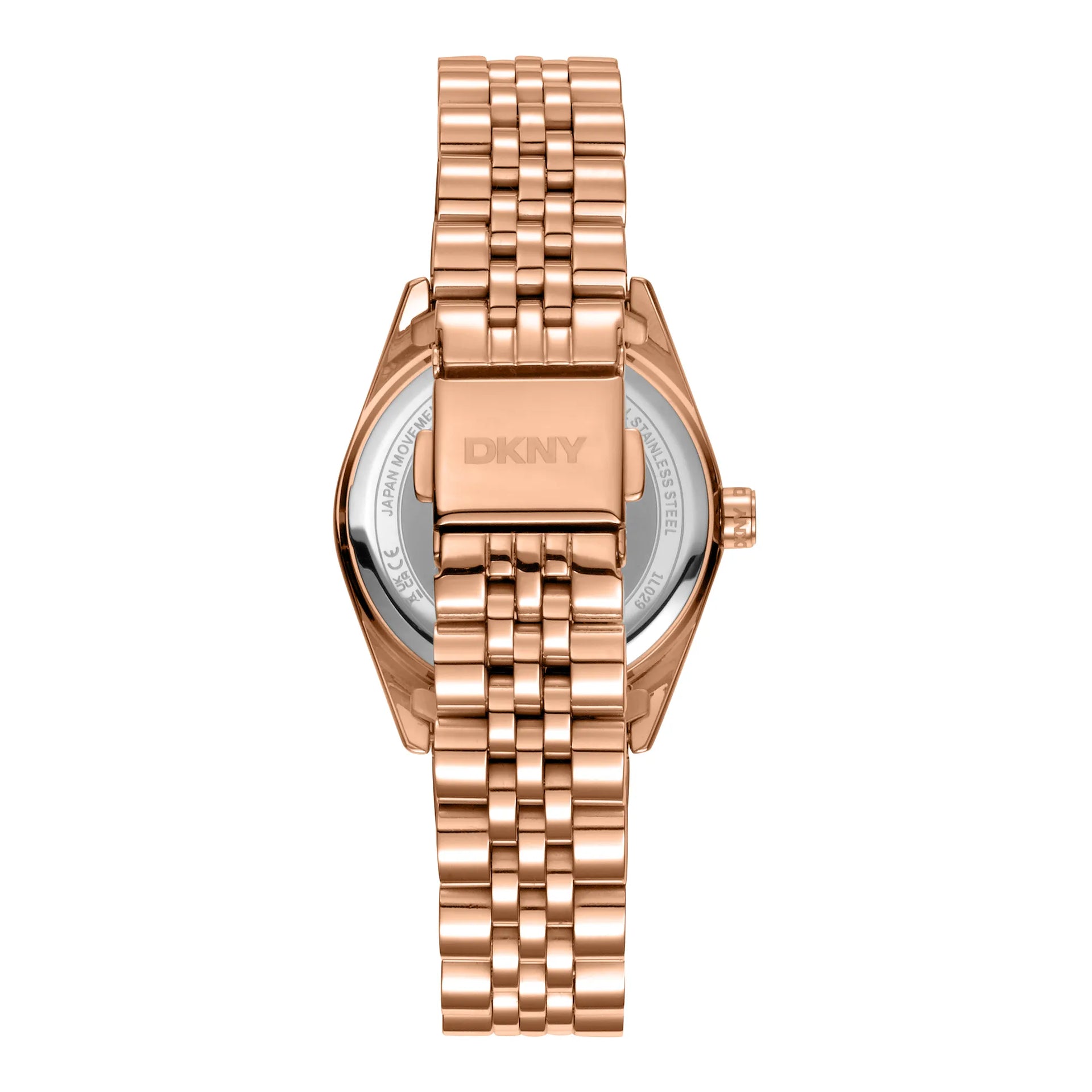 En el corazón del bullicioso paisaje urbano, donde la moda se encuentra con la función, surge un reloj que encarna la esencia de la elegancia urbana. El DKNY Nolita Midi, con su exquisita caja redonda, es un testimonio del atractivo del oro rosa, capturando la luz con cada movimiento. Diseñado para la mujer moderna que navega la vida con gracia y estilo, este reloj es más que un accesorio, es una declaración. El diámetro de la caja de 32 mm ofrece un equilibrio perfecto entre sutileza y presencia, convirtiéndolo en un compañero ideal para cualquier ocasión. Su esfera azul noche, que recuerda a un cielo estrellado, añade un toque de misterio y sofisticación, mientras que el cristal mineral asegura claridad y durabilidad. La correa de acero inoxidable, también en oro rosa, se envuelve alrededor de la muñeca con un sentido de lujo refinado, asegurada por un cierre desplegable con botón pulsador para facilidad y seguridad. Resistente al agua hasta 50 metros, este reloj está diseñado para soportar lo inesperado, ya sea que te sorprenda un aguacero repentino o simplemente estés lavándote las manos. El movimiento de cuarzo garantiza precisión, mientras que la visualización de tres agujas mantiene el tiempo con elegancia sin esfuerzo. Este reloj DKNY no es solo un guardatiempo, es un reflejo del vibrante y siempre cambiante mundo de la moda, donde cada tic del reloj es un recordatorio para abrazar el momento con confianza y aplomo.