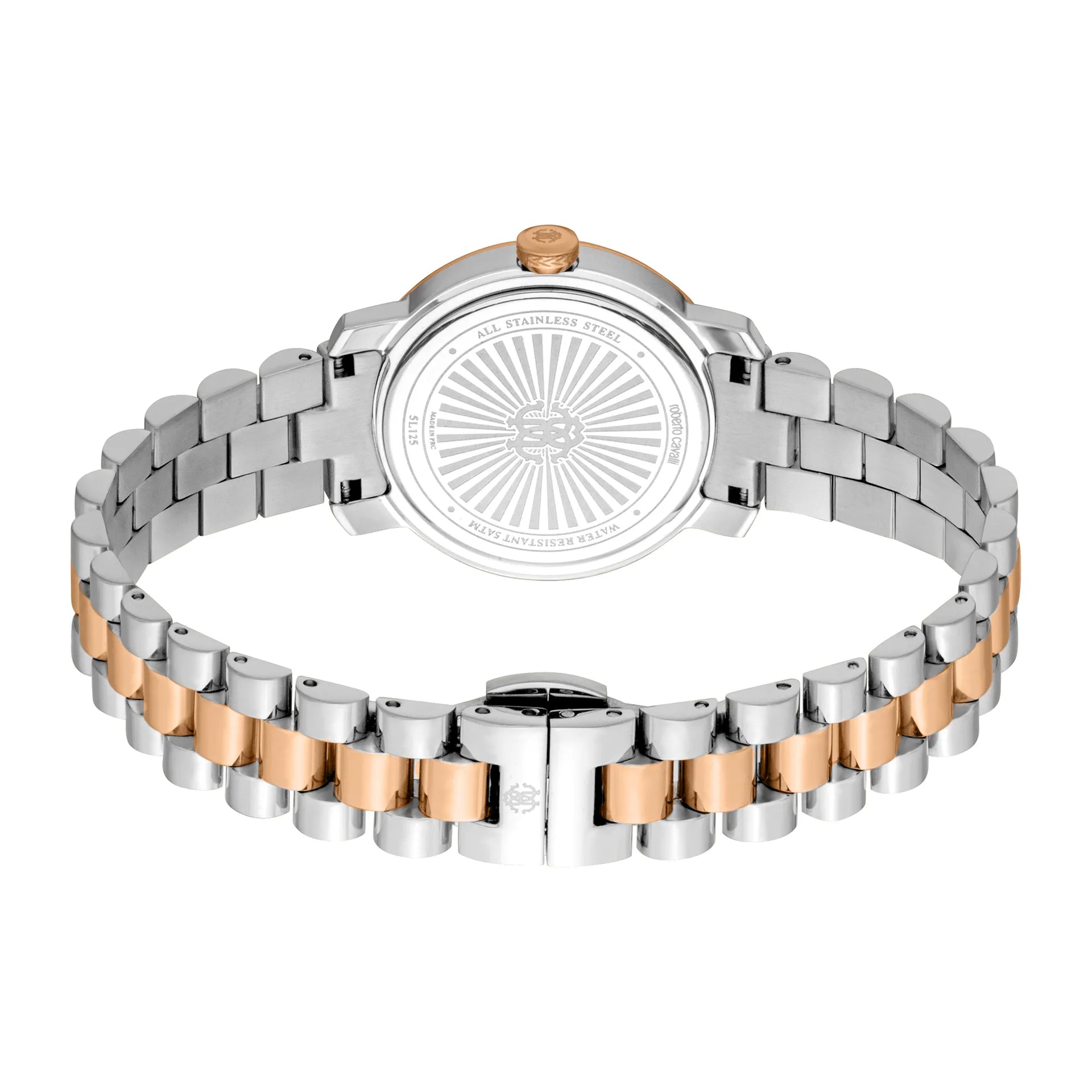 En el mundo de la moda, donde la elegancia se encuentra con la innovación, surge un reloj que encarna la esencia de la sofisticación y el estilo. Fabricado en el corazón de la relojería suiza, este reloj Roberto Cavalli Lady es un testimonio de diseño refinado y atractivo atemporal. Su caja redonda, bañada en un lustroso gris plateado, captura la luz con cada movimiento, creando una danza de reflejos que es a la vez cautivadora y sutil. El diámetro de 30 mm logra un equilibrio perfecto entre delicadeza y presencia, convirtiéndolo en un compañero ideal para la mujer moderna que valora tanto la gracia como la funcionalidad. Resistente al agua hasta 50 metros, este reloj es tan versátil como hermoso, listo para acompañarte desde la sala de juntas hasta el salón de baile. La esfera de cristal mineral protege una carátula gris hierro, donde tres manecillas se deslizan sin esfuerzo, impulsadas por la precisión de un movimiento de cuarzo con calibre GL32. La corona de tipo pull & push ofrece facilidad de ajuste, asegurando que el tiempo siempre esté a tu favor. Rodeando la muñeca hay una correa de acero inoxidable, cuyo tono gris plateado hace eco de la caja, asegurada con un cierre desplegable tipo mariposa con botón pulsador para seguridad y facilidad de uso. Este reloj no es solo un accesorio, es una declaración de pensamiento vanguardista en moda, una pieza que habla al corazón de quienes se atreven a mezclar tradición con modernidad.