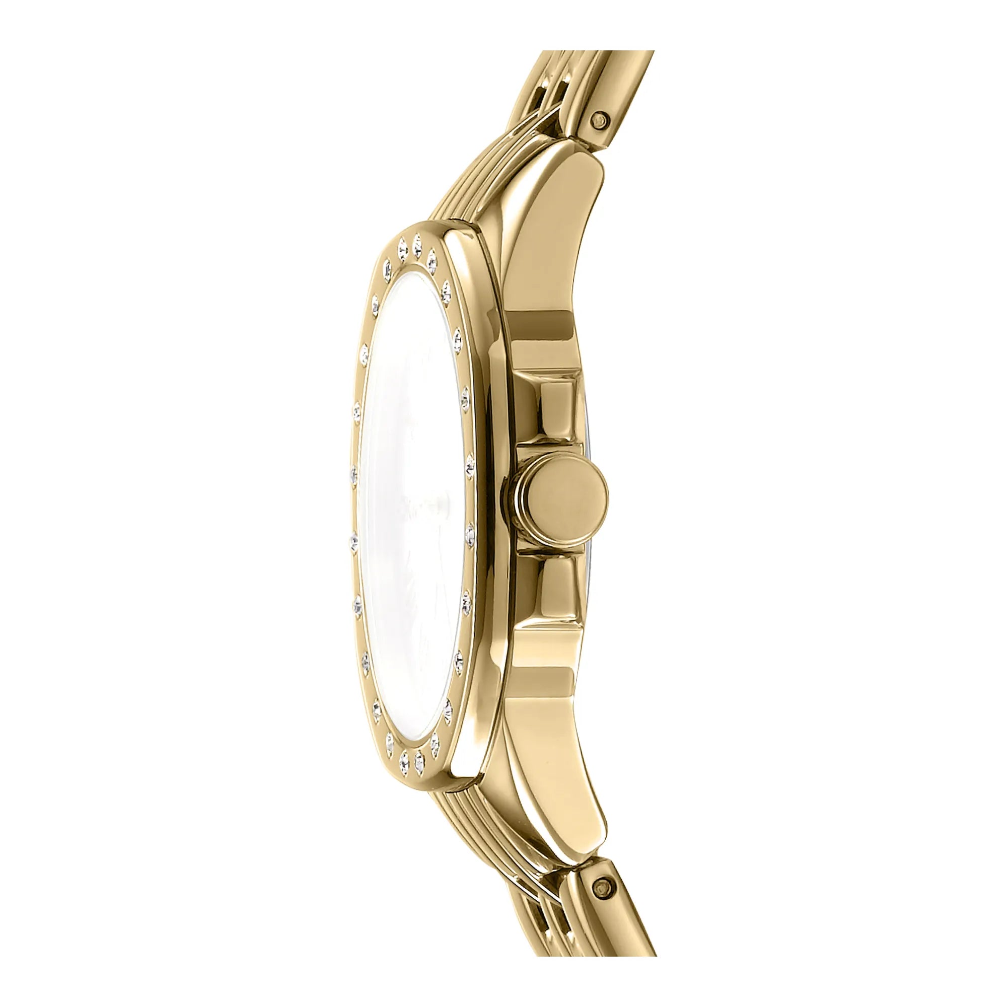 Au cœur animé de New York, où la mode rencontre le pouls vibrant de la ville, émerge une montre qui incarne l'essence de l'élégance urbaine—la DKNY Brooklyn Mini. Cette montre exquise, conçue pour la femme moderne, attire l'attention avec son boîtier octogonal saisissant, baigné dans la chaude lueur de l'or jaune. Avec un design raffiné qui parle à la fois de sophistication et de style, cette montre est un témoignage de l'art de l'horlogerie. Le diamètre du boîtier de 30 mm offre un équilibre parfait entre subtilité et affirmation, en faisant un accessoire idéal pour toute occasion. Le cadran gris argenté, rappelant la silhouette de la ville au crépuscule, est orné de trois aiguilles qui glissent sans effort, animées par un mouvement quartz précis. Le cristal minéral assure clarté et durabilité, tandis que la couronne à tirer et pousser ajoute une touche de praticité. Le bracelet en acier inoxydable, également en or jaune, s'enroule autour du poignet avec une boucle déployante papillon, offrant à la fois sécurité et élégance. Avec une résistance à l'eau allant jusqu'à 50 mètres, cette montre est aussi polyvalente que belle, prête à vous accompagner de la salle de réunion à une soirée en ville. La DKNY Brooklyn Mini n'est pas seulement une montre, c'est une déclaration de style, un reflet de l'esprit dynamique de la femme qui la porte.