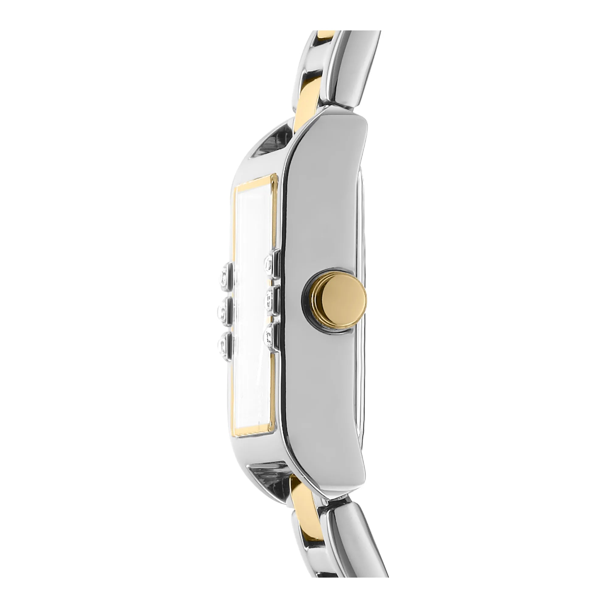 In the bustling heart of the city, where fashion meets function, the DKNY DK1L008 Westside Glitz emerges as a beacon of elegance and modernity. Crafted with precision, this timepiece is a testament to the sophisticated style of the contemporary woman. Its rectangular case, bathed in a sleek silver grey, captures the essence of urban chic, while the bottle green dial adds a touch of mystery and depth, reminiscent of a serene forest hidden amidst the concrete jungle. The stainless steel band, also in silver grey, wraps around the wrist with a sense of refined grace, secured by a butterfly deployant clasp with a push-button for ease and comfort. The mineral crystal protects the dial, ensuring clarity and durability, while the pull & push crown offers seamless adjustment. Powered by a reliable quartz movement, this watch promises precision and reliability, making it an indispensable companion for the woman who navigates her world with confidence and poise. Water-resistant, it stands resilient against the unexpected, embodying the spirit of a city that never sleeps. The DKNY Westside Glitz is not just a watch, it's a statement of style, a reflection of the wearer’s inner strength and elegance, perfectly suited for those who dare to blend fashion with function in their everyday lives.
