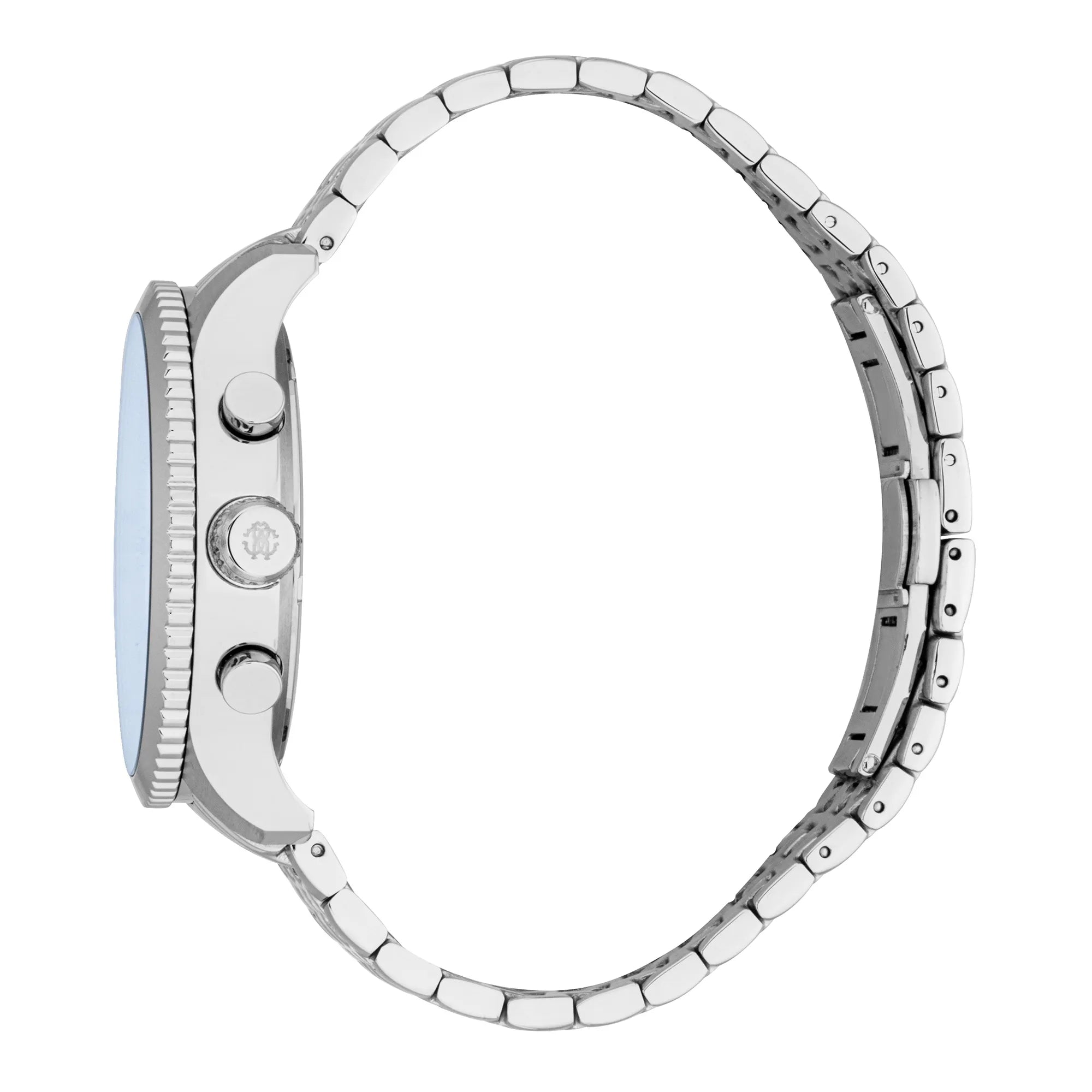 In the realm of timepieces where elegance meets precision, the Roberto Cavalli Gent watch stands as a testament to sophisticated fashion. Crafted in the heart of Swiss watchmaking, this exquisite timepiece captures the essence of modern masculinity with its refined design. The round case, bathed in a sleek silver-grey hue, measures an impressive 44mm in diameter, exuding a commanding presence on the wrist. Its mineral crystal face protects a captivating night blue dial, where the art of timekeeping is elevated to a new level. The chronograph display, powered by the reliable JS25 quartz movement, offers both precision and style, while the date calendar and 24-hour time feature ensure functionality for the modern man. The stainless steel band, matching the case in its silver-grey elegance, wraps comfortably around the wrist, secured by a butterfly deployant clasp with a push-button for ease and security. With a water resistance of up to 100 meters, this watch is not just a fashion statement but a versatile companion for any adventure. The Roberto Cavalli Gent watch is more than an accessory, it is a bold declaration of style and sophistication, perfect for those who appreciate the finer things in life.