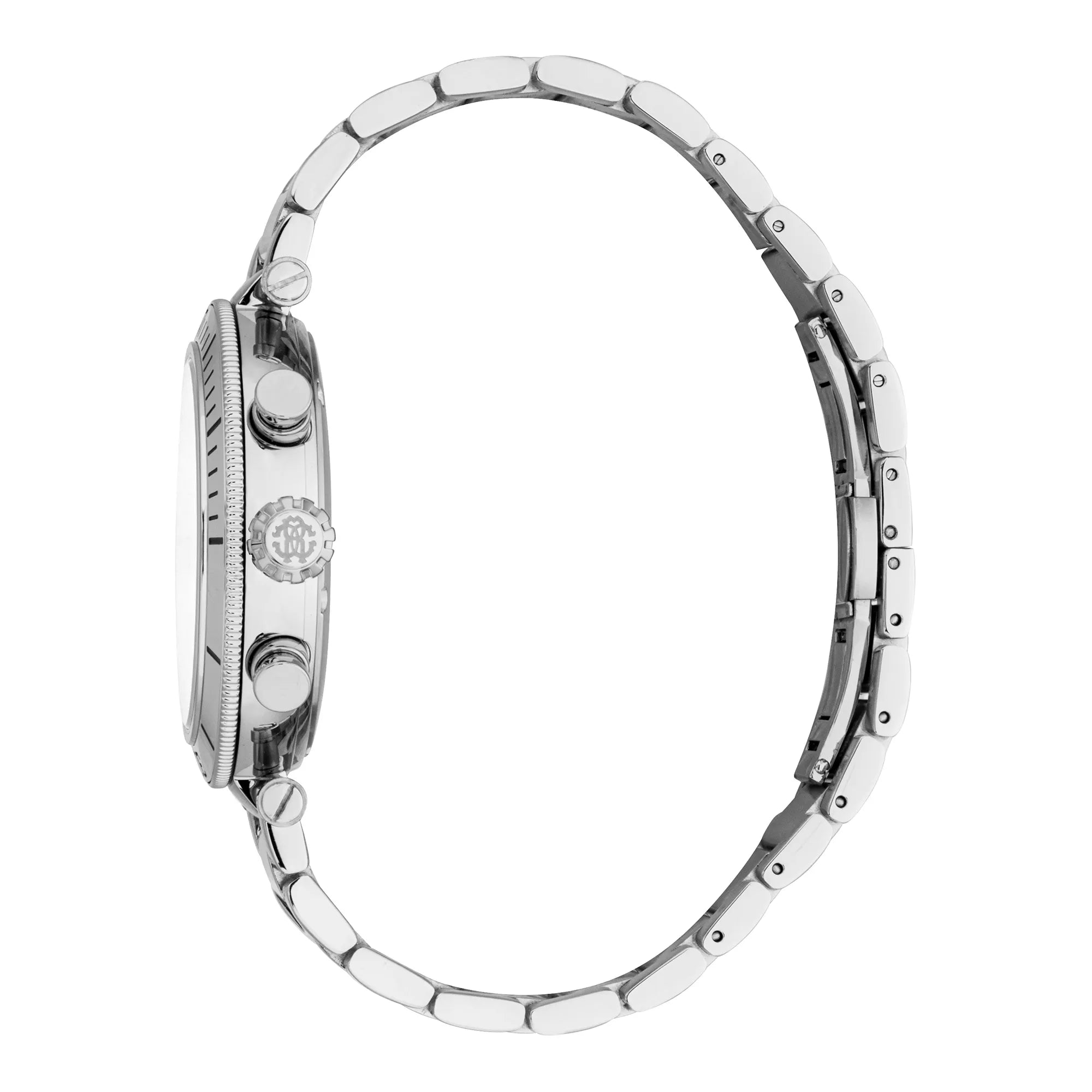In the world of horology, where elegance meets precision, emerges a timepiece that embodies the essence of modern masculinity. Crafted in the heart of Swiss watchmaking, this Roberto Cavalli Gent watch is a testament to refined design and sophisticated style. Its round case, bathed in a sleek silver grey hue, measures a commanding 43mm in diameter, making a bold statement on any wrist. The mineral crystal face offers a clear view of the intricately detailed chronograph display, where time is measured with the utmost accuracy thanks to the reliable Quartz movement and JS25 caliber. The dial, a harmonious extension of the case in its silver grey tone, is a canvas of functionality, featuring a date calendar and 24-hour time display. Encircling the wrist with a stainless steel band, this watch exudes a seamless blend of strength and elegance, secured with a butterfly deployant clasp with a push-button for ease and comfort. Water-resistant up to 100 meters, it is as versatile as it is stylish, ready to accompany you from the boardroom to the depths of the ocean. This Roberto Cavalli watch is not just an accessory, it is a statement of fashion-forward thinking and timeless sophistication, designed for the man who appreciates the finer things in life.