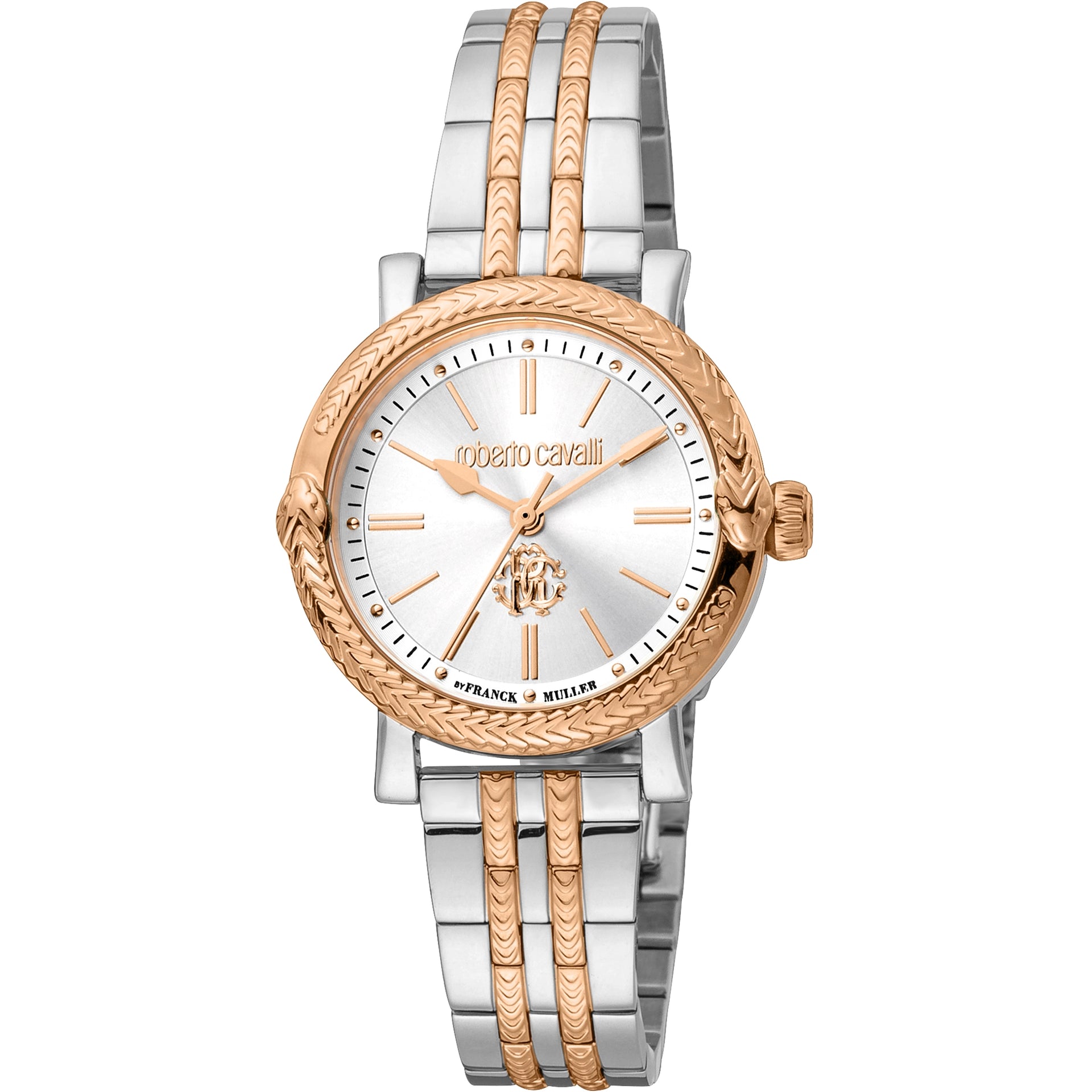 W świecie haute horologii, gdzie elegancja spotyka się z precyzją, pojawia się zegarek, który ucieleśnia istotę wyrafinowania i stylu. Wykonany w Szwajcarii, ten zegarek Roberto Cavalli by Franck Muller jest świadectwem sztuki zegarmistrzowskiej, zaprojektowany dla nowoczesnej kobiety, która ceni zarówno modę, jak i funkcjonalność. Urok różowego złota otacza kopertę o średnicy 30 mm, tworząc ciepły, przyciągający blask, który uzupełnia wyrafinowany design. Jego pasek ze stali nierdzewnej, również w różowym złocie, płynnie łączy się z kopertą, oferując harmonijne połączenie luksusu i trwałości. Srebrno-szara tarcza, będąca płótnem subtelnej elegancji, jest chroniona przez szafirowe szkło, zapewniając klarowność i odporność. Z wodoodpornością do 50 metrów, ten zegarek jest tak wszechstronny, jak piękny, gotowy towarzyszyć Ci od sali konferencyjnej po balową salę. Koronka typu pull & push dodaje praktyczności, podczas gdy mechanizm kwarcowy, napędzany precyzyjnym kalibrem 763, zapewnia, że czas zawsze jest po Twojej stronie. Ten zegarek z analogowym wyświetlaczem to nie tylko dodatek, to wyraz gracji i opanowania, odzwierciedlenie nienagannego gustu i ponadczasowej elegancji noszącej go osoby.