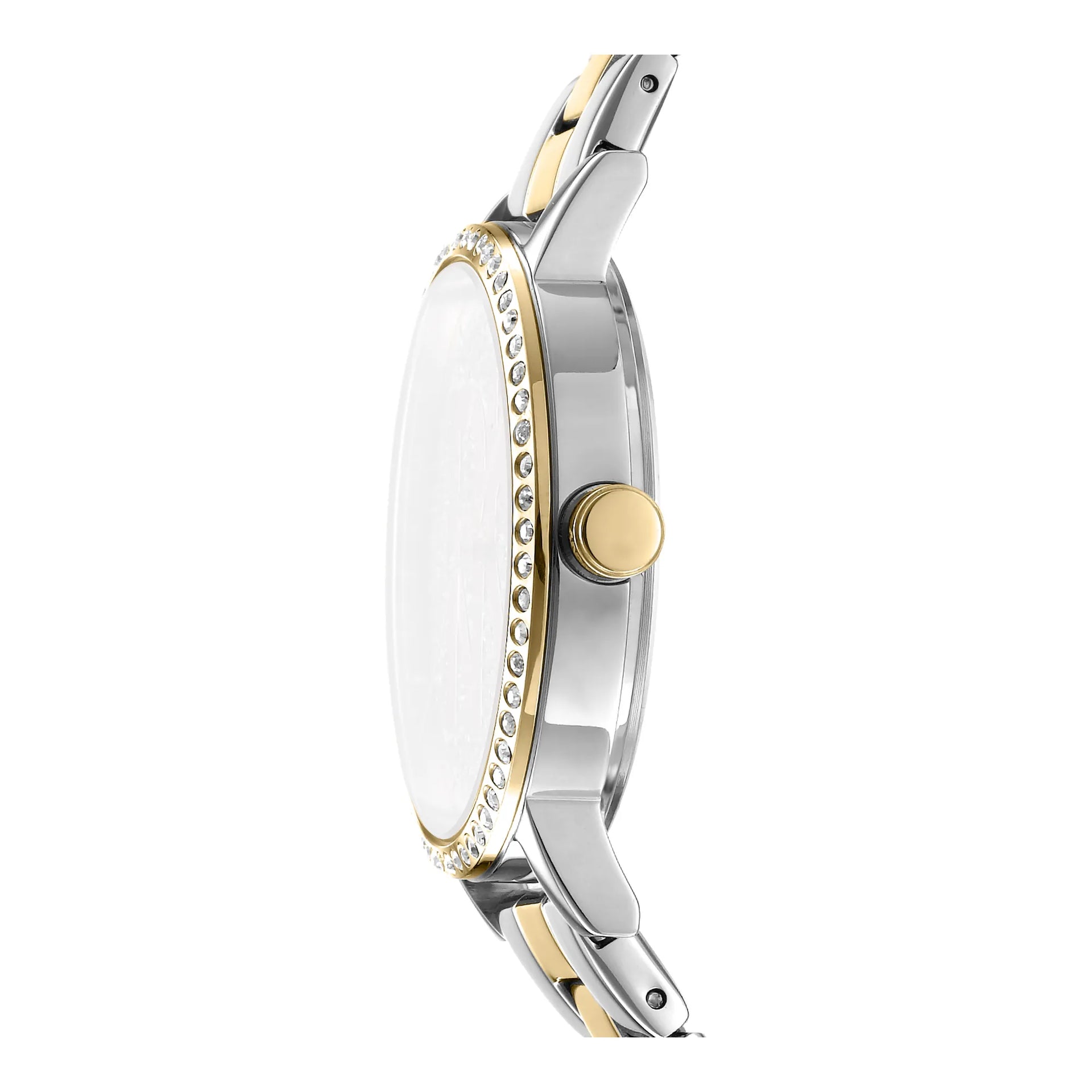 W tętniącym życiem sercu Nowego Jorku, gdzie moda spotyka się z funkcjonalnością, pojawia się zegarek, który ucieleśnia ducha miejskiej elegancji. Zegarek DKNY DK1L035 Soho Logo jest świadectwem dynamicznego stylu życia nowoczesnej kobiety, płynnie łącząc wyrafinowanie z praktycznością. Jego okrągła koperta, wykonana w eleganckim srebrno-szarym kolorze, odzwierciedla ikoniczny krajobraz miasta, podczas gdy średnica 36 mm oferuje idealną równowagę między odwagą a subtelnością. Zaprojektowany dla tych, którzy poruszają się przez życie z gracją, ten zegarek szczyci się wyrafinowanym designem, który jest zarówno stylowy, jak i trwały, z wodoodpornością do 50 metrów. Mineralne szkiełko chroni tarczę, zapewniając klarowność i odporność na zgiełk codziennego życia. Koronka typu pull & push dodaje klasycznego uroku, podczas gdy stalowa bransoleta, również w srebrno-szarym kolorze, otula nadgarstek z poczuciem ponadczasowej elegancji. Motylkowe zapięcie z przyciskiem zapewnia bezpieczne dopasowanie, pozwalając noszącemu poruszać się przez dzień z pewnością siebie. Tarcza, w harmonijnym srebrno-szarym kolorze, wyposażona jest w trzywskazówkowy mechanizm kwarcowy, oferujący precyzję i niezawodność. Ten zegarek DKNY to więcej niż tylko dodatek, to manifest stylu, odzwierciedlenie żywej energii miasta i celebracja podróży nowoczesnej kobiety.