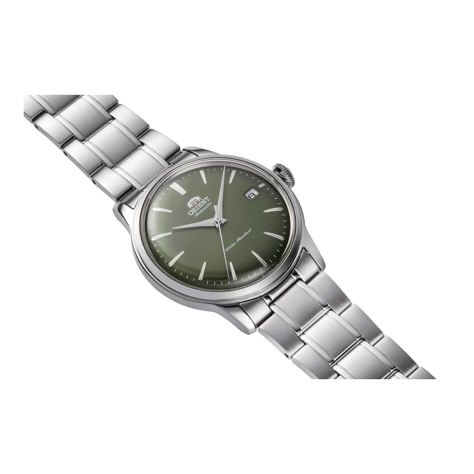 W królestwie ponadczasowej elegancji, ORIENT AC0M Bambino 38mm wyłania się jako symbol klasycznej wyrafinowania. Wykonany w sercu zegarmistrzowskiej doskonałości, ten zegarek ucieleśnia idealne połączenie tradycji i nowoczesności. Jego okrągła koperta, skąpana w lśniącym srebrno-szarym kolorze, otacza tarczę, która eksploduje żywym odcieniem zieleni trawy, nawiązując do estetyki inspirowanej popem, która odważa się wyróżniać. Kryształ mineralny chroni tarczę, zapewniając przejrzystość i trwałość, podczas gdy przezroczysty tył oferuje wgląd w misterny taniec jego mechanicznego serca. Z średnicą koperty 38mm, wygodnie leży na nadgarstku, emanując wyrafinowanym designem, który jest zarówno stonowany, jak i uderzający. Bransoleta ze stali nierdzewnej, dopasowana do koperty w srebrno-szarej elegancji, zabezpiecza się składanym zapięciem motylkowym, wyposażonym w przycisk i blokadę bezpieczeństwa dla dodatkowej pewności. Ten zegarek ORIENT Classic to nie tylko czasomierz, to manifest stylu i precyzji. Mechaniczny mechanizm, napędzany kalibrem F6724 z 22 kamieniami, obiecuje codzienną dokładność +25/-15 oraz wygodę zarówno nakręcania ręcznego, jak i automatycznego. Wodoodporny i wyposażony w kalendarz daty, spełnia oczekiwania wymagającego dżentelmena, który ceni zarówno formę, jak i funkcję. ORIENT AC0M Bambino 38mm to więcej niż zegarek, to świadectwo trwałego uroku klasycznego wzornictwa, przemyślanego na nowo dla współczesnej ery.