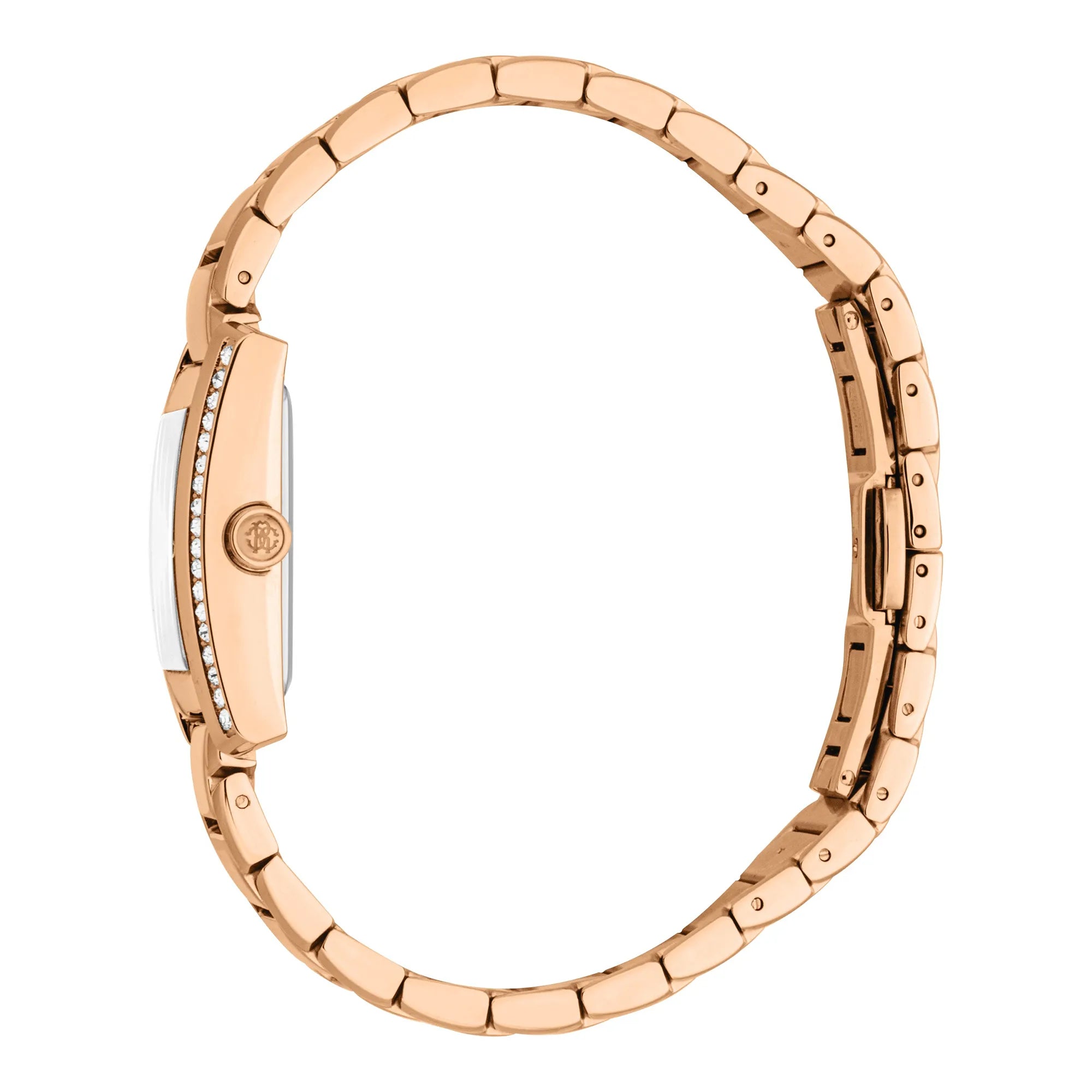 W świecie mody, gdzie elegancja spotyka się z innowacją, pojawia się zegarek, który uchwyca istotę wyrafinowania i stylu. Wykonany w sercu szwajcarskiego zegarmistrzostwa, ten Roberto Cavalli Lady zegarek jest świadectwem wyrafinowanego designu i doskonałego rzemiosła. Jego prostokątna koperta, skąpana w ciepłym blasku różowego złota, emanuje ponadczasowym urokiem, który jest zarówno nowoczesny, jak i klasyczny. Mineralne szkiełko oferuje wyraźny widok na srebrno-szary cyferblat, gdzie trzy wskazówki tańczą z gracją, napędzane precyzją mechanizmu kwarcowego z kalibrem GL34. Koronka typu pull & push dodaje praktyczności, zapewniając łatwość użytkowania bez kompromisów w kwestii elegancji. Otaczając nadgarstek stalową bransoletą, również w różowym złocie, ten zegarek jest zabezpieczony zapięciem motylkowym z przyciskiem, oferując zarówno bezpieczeństwo, jak i styl. Wodoodporny, został zaprojektowany, aby towarzyszyć nowoczesnej kobiecie w każdej chwili jej dnia, od tętniących życiem ulic miasta po spokojne wieczorne przyjęcia. Ten Roberto Cavalli zegarek to nie tylko czasomierz, to wyraz nowoczesnego myślenia o modzie, celebracja kobiecości i symbol nienagannego gustu noszącej go osoby.