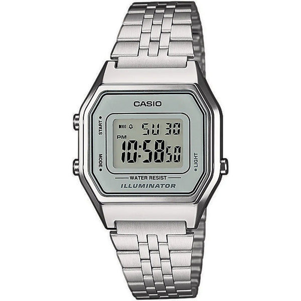 Delicate yet undeniably modern, this women’s watch is a celebration of understated elegance. The petite, 28mm squared case in silver grey is perfectly matched with a sleek stainless steel band and adjustable slide clasp, ensuring a graceful fit on the wrist. The LCD dial, echoing the case’s silvery sheen, is protected by a lightweight plastic crystal, while the pull & push crown offers effortless control. Water resistance adds a layer of practicality, making this timepiece as functional as it is beautiful. Casio’s design philosophy shines through in every detail, offering a refined accessory for those who appreciate subtle sophistication in their everyday style.