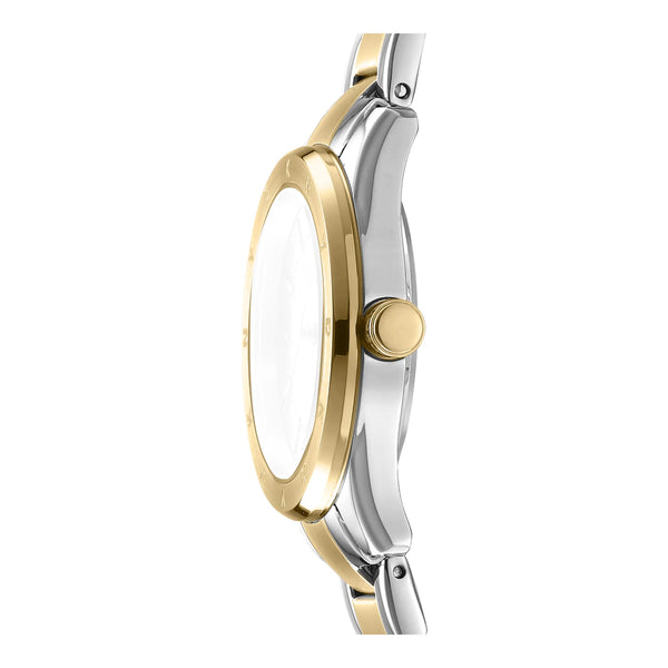 In the bustling heart of New York City, where fashion meets function, emerges a timepiece that embodies the spirit of modern elegance—the DKNY DK1L018 Chambers Sport. This exquisite watch, designed for the contemporary woman, is a testament to refined design and urban sophistication. Its round case, crafted in a sleek silver grey, measures a delicate 30mm in diameter, perfectly balancing subtlety with presence. The mineral crystal face offers a clear view of the dial, which mirrors the case's silver grey hue, creating a seamless aesthetic that is both chic and understated. The stainless steel band, also in silver grey, wraps around the wrist with a butterfly deployant clasp, ensuring both security and style with its push-button mechanism. Powered by precise quartz movement, this watch features a classic 3-hand display, making it as reliable as it is fashionable. With a water resistance of up to 50 meters, it is as versatile as the city it draws inspiration from, ready to accompany you from a morning meeting to an evening gala. The DKNY Chambers Sport is more than just a watch, it's a statement of style, a reflection of the dynamic woman who wears it, and a celebration of the vibrant energy that defines the world of fashion.