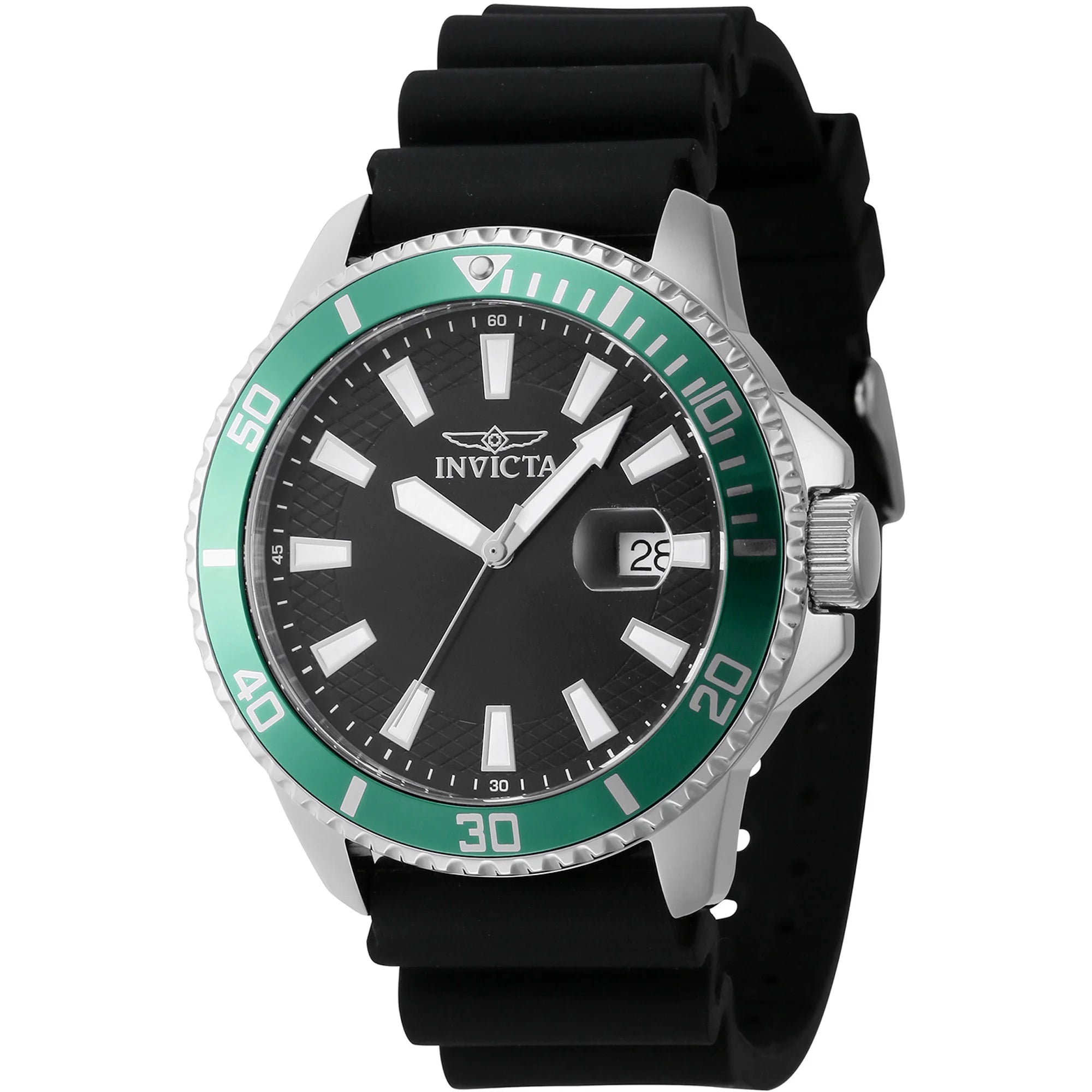 In the realm of timepieces, where precision meets style, emerges a creation that embodies both elegance and functionality. Crafted in the heart of horological expertise, the Invicta Pro Diver is a testament to refined design and casual sophistication. Its round case, bathed in a sleek silver grey hue, commands attention with a commanding 45mm diameter, making it a bold statement on any wrist. The watch's black silicon band, secured with a tang buckle, offers a comfortable yet secure fit, perfect for the modern man who values both style and practicality. Beneath the resilient Hardlex crystal lies a black dial, a canvas of understated elegance, where three hands dance gracefully, powered by the reliable Quartz movement. The VJ42 caliber ensures precision, while the date calendar adds a touch of practicality to this masterpiece. With a water resistance of up to 50 meters, this watch is not just an accessory but a companion for life's adventures, whether on land or at sea. The Invicta Pro Diver is more than a watch, it's a statement of timeless style and enduring quality, designed for those who appreciate the finer things in life.