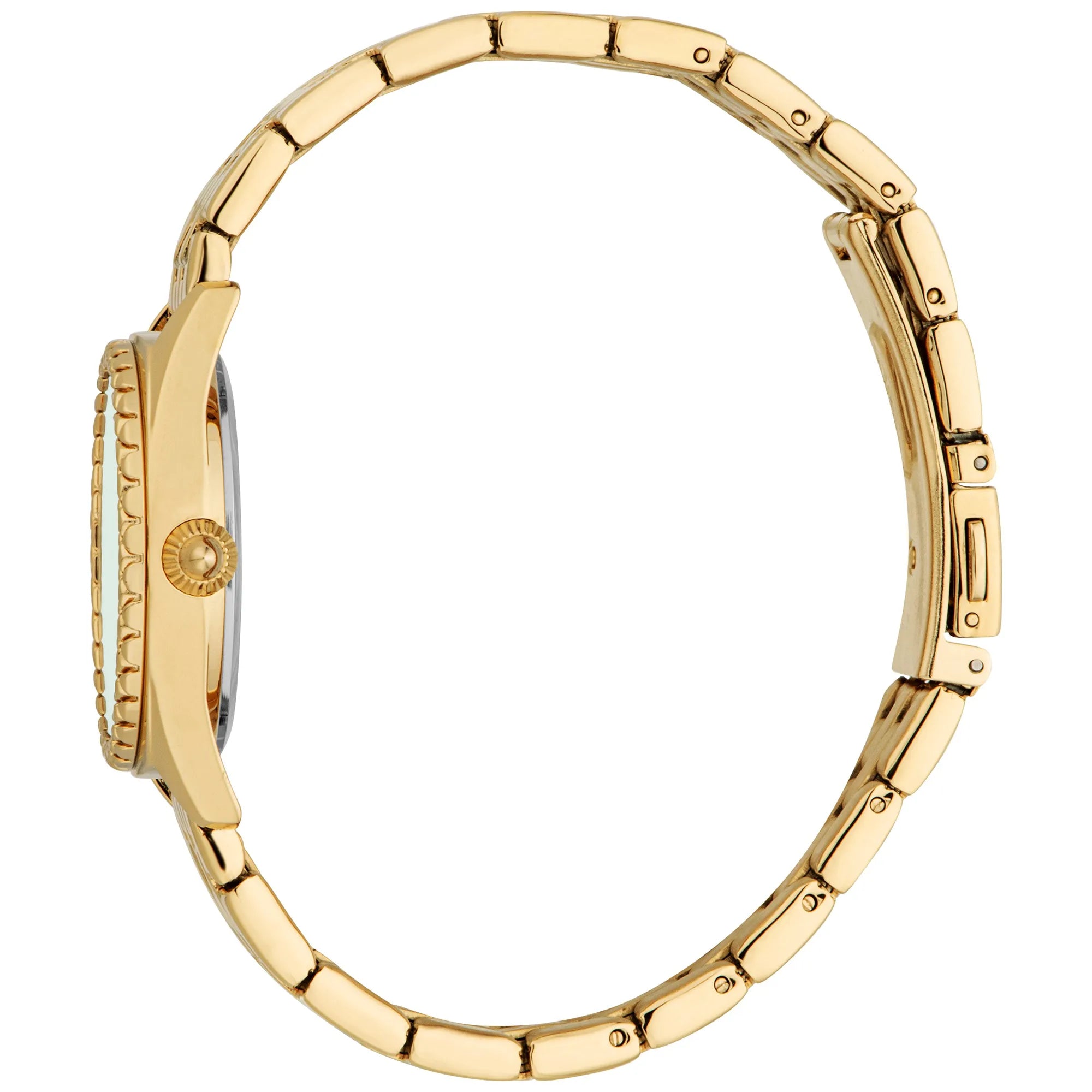 In the realm of fashion, where elegance meets audacity, emerges a timepiece that embodies the spirit of the modern woman: the Just Cavalli Watch. Crafted in a refined round shape, this watch is a testament to the brand's commitment to bold design and exquisite craftsmanship. The yellow gold case, with a diameter of 30mm, exudes a sense of luxury and sophistication, perfectly complemented by the matching stainless steel band. The butterfly deployant clasp with a push-button ensures a seamless fit, making it as practical as it is stylish. The dial, in a captivating bottle green, serves as a canvas for the three-hand display, subtly hinting at the wearer’s appreciation for timeless elegance. Beneath its mineral crystal, the quartz movement, powered by the VJ32 caliber, ensures precision and reliability. The date calendar feature adds a touch of practicality to this fashion-forward accessory. Water-resistant, this watch is designed to accompany you through life's adventures, whether you're navigating the urban jungle or attending a sophisticated soirée. The Just Cavalli Watch is more than just a timepiece, it's a statement of character and style, a reflection of the indomitable spirit of those who dare to stand out.