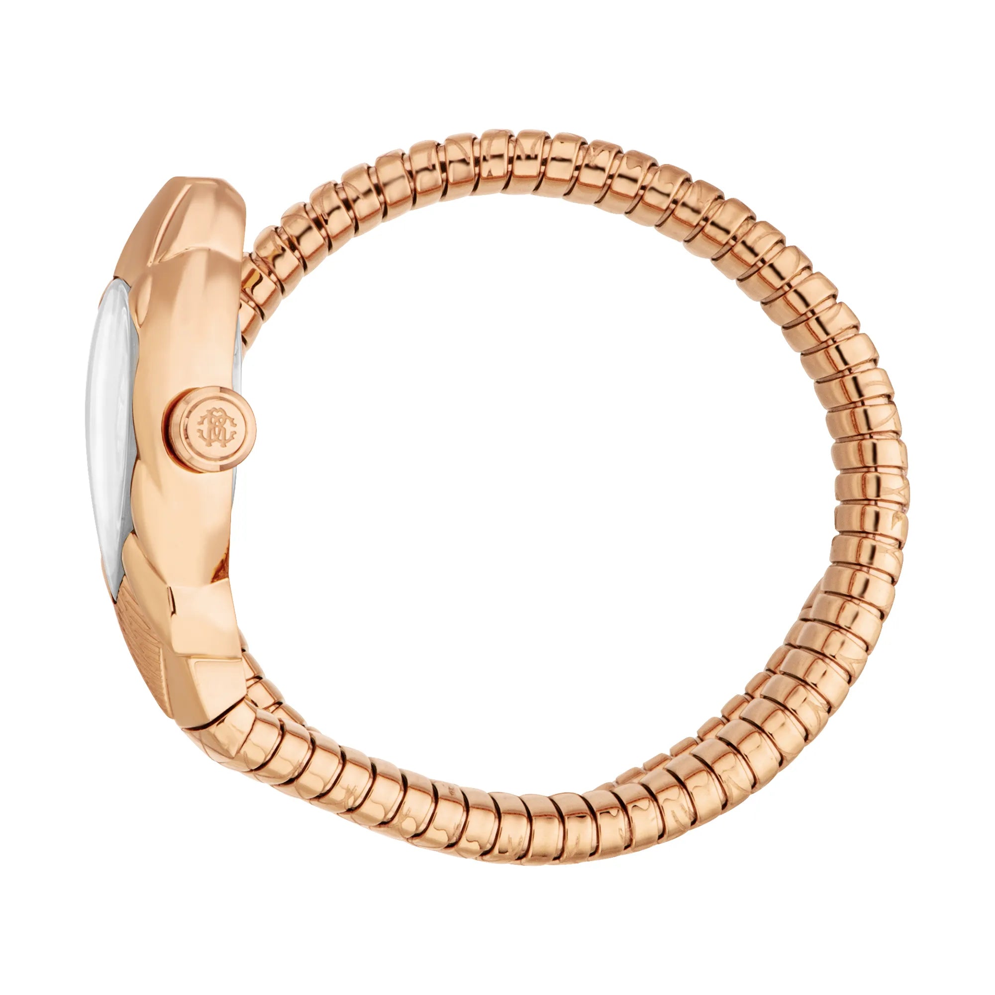 In the world of high fashion, where elegance meets innovation, emerges a timepiece that captures the essence of sophistication and style. Crafted in the heart of Swiss watchmaking excellence, this Roberto Cavalli Lady watch is a testament to refined design and timeless allure. The oval case, bathed in a luxurious rose gold hue, exudes a sense of opulence that is both captivating and understated. Its mineral crystal face offers a clear window into a world of precision, where the silver-grey dial serves as a canvas for the artful dance of three hands powered by a reliable quartz movement. The GL24 caliber ensures that every tick is a whisper of accuracy, a promise of reliability. The pull & push crown adds a touch of practicality, seamlessly blending form and function. Encircling the wrist with grace, the stainless steel band, also in rose gold, mirrors the case's elegance, creating a harmonious symphony of color and texture. Water-resistant, this watch is not just an accessory but a companion for life's adventures, ready to withstand the elements while maintaining its exquisite charm. Designed for the modern woman who appreciates fashion and functionality, this Roberto Cavalli Lady watch is more than a timekeeper, it is a statement of identity, a reflection of the wearer's unique style and grace.