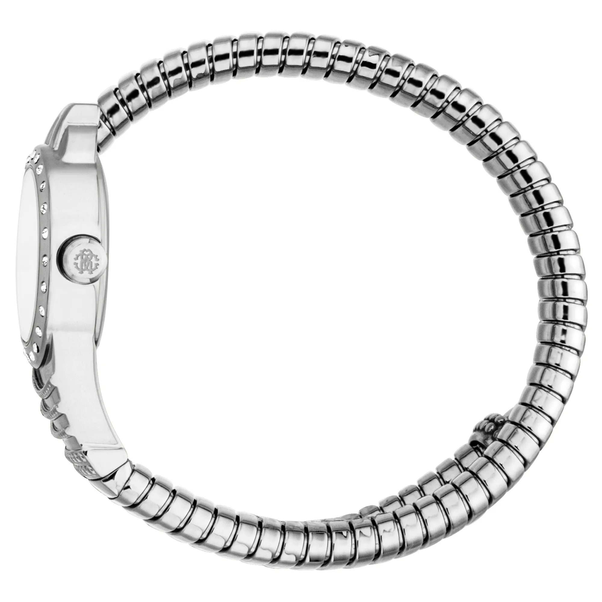 In the world of fashion, where elegance meets innovation, emerges a timepiece that embodies the essence of sophistication and style. Crafted in the heart of Swiss watchmaking excellence, this Roberto Cavalli Lady watch is a testament to refined design and timeless allure. Its round case, bathed in a lustrous silver grey, captures the light with every movement, creating a dance of reflections that is both captivating and subtle. The 22mm diameter is a perfect balance of grace and presence, making it an ideal companion for the modern woman who values both form and function. The stainless steel band, also in a matching silver grey, wraps around the wrist with a seamless elegance, offering a sense of continuity and harmony with the case. The dial, a monochromatic masterpiece in silver grey, is a canvas of minimalism, where the three hands glide effortlessly, powered by the precision of a quartz movement with a GL24 caliber. Water-resistant and protected by a mineral crystal, this watch is designed to withstand the rigors of daily life while maintaining its exquisite charm. The pull & push crown adds a touch of practicality, ensuring that time is always at your fingertips. This Roberto Cavalli Lady watch is more than just a timepiece, it is a statement of fashion-forward thinking, a celebration of femininity, and a tribute to the art of watchmaking.