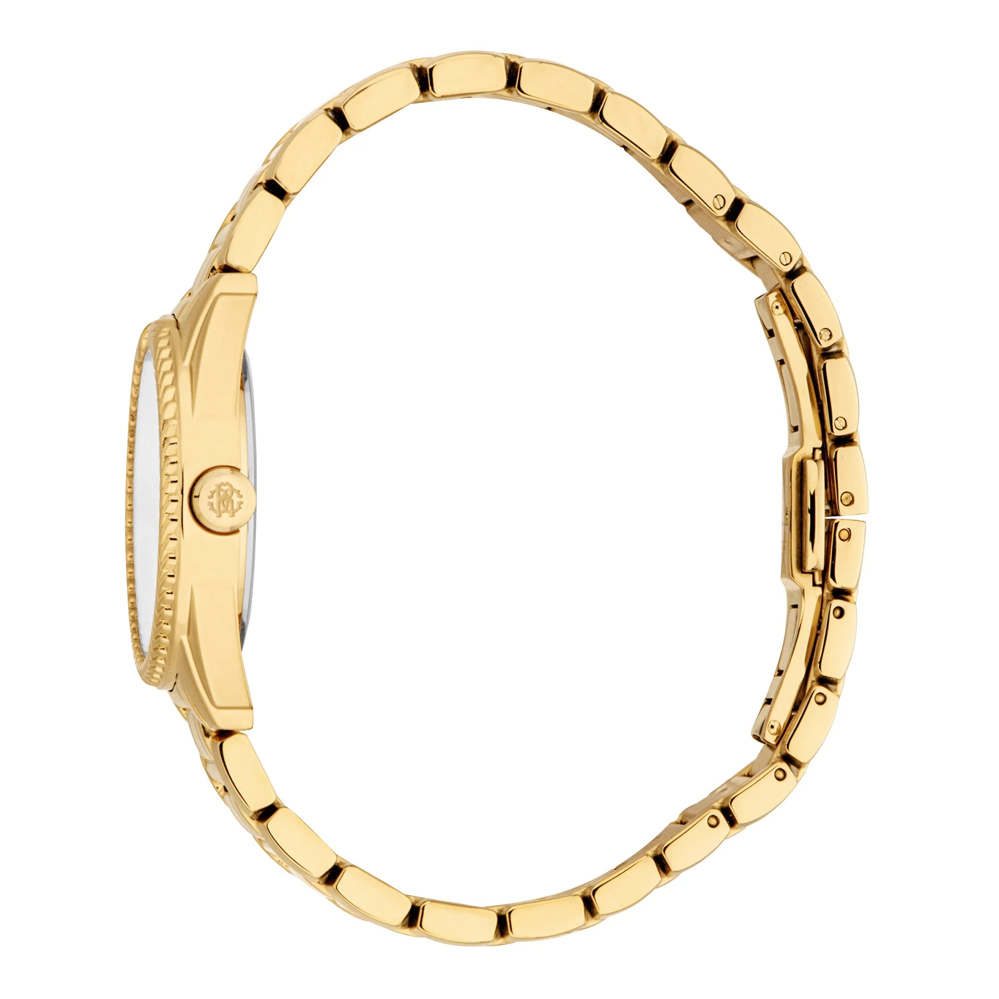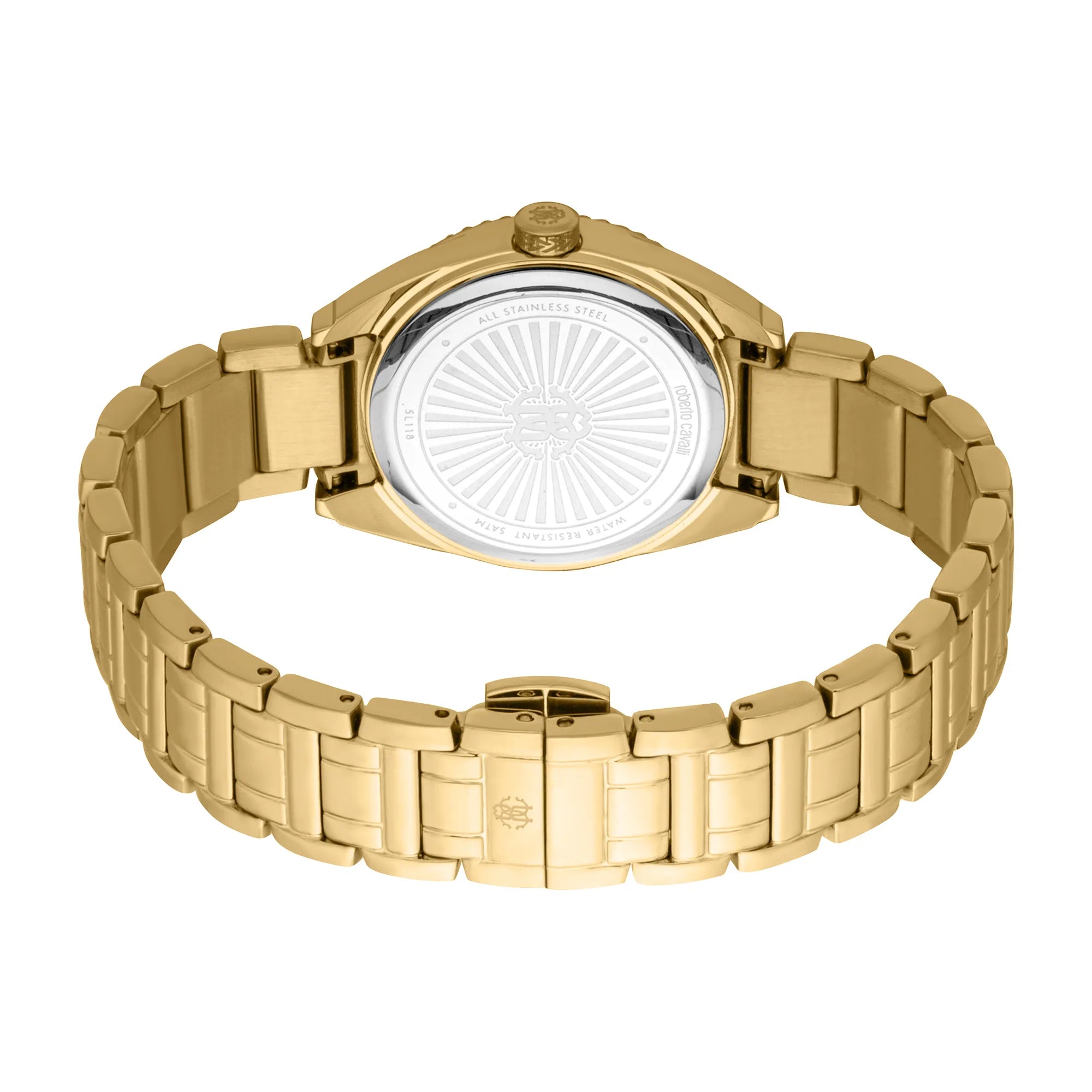 In the world of high fashion, where elegance meets innovation, emerges a timepiece that embodies the essence of sophistication and style. Crafted in the heart of Swiss watchmaking, this Roberto Cavalli Lady watch is a testament to the brand's commitment to luxury and precision. Its round case, bathed in the opulent hue of yellow gold, captures the light with every movement, creating a dazzling display of refinement. With a case diameter of 30mm, it sits gracefully on the wrist, a perfect blend of subtlety and statement. The mineral crystal face protects a silver-grey dial, where three hands dance in perfect harmony, powered by the reliable GL32 quartz movement. The stainless steel band, also in yellow gold, wraps around the wrist with a butterfly deployant clasp, ensuring both security and ease of wear. Water-resistant up to 50 meters, this watch is as practical as it is beautiful, ready to accompany you through life's adventures. The pull & push crown adds a touch of classic charm, inviting you to adjust time with ease. This Roberto Cavalli Lady watch is more than just a timepiece, it's a symbol of timeless elegance, a reflection of the modern woman's grace and strength, destined to be a cherished companion in her journey through life.